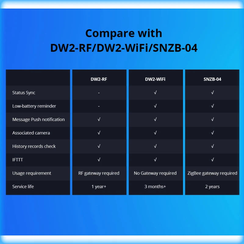 Fiable, connecté et facile à intégrer, le capteur SONOFF DW2 RF est un élément indispensable pour une maison intelligente sécurisée. Son installation rapide, sa longue autonomie, sa portée étendue, et sa compatibilité avec les systèmes domotiques modernes en font une solution idéale pour surveiller tous les accès de votre logement.