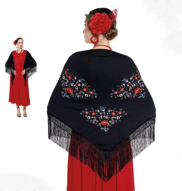 Châle Manila Broderie Florale - Élégance Danse Flamenco
