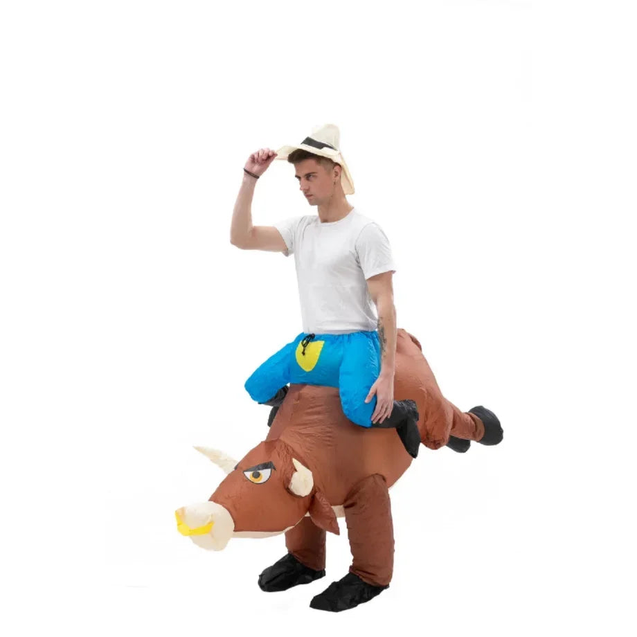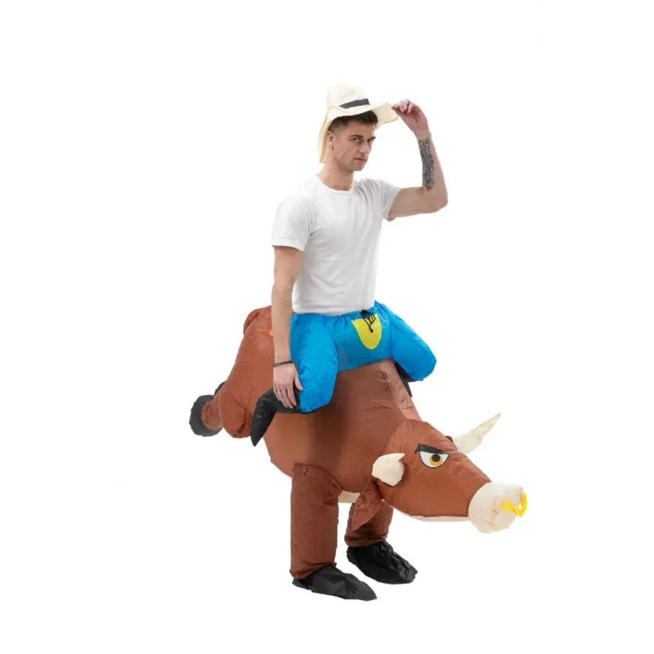 Offrez-vous ce déguisement unique et laissez-vous transporter par l’audace d’un style incomparable. Adoptez dès aujourd’hui le Costume Gonflable d'Équitation de Taureau pour sublimer votre prochain événement et vous démarquer avec une touche d’esprit festif et culturel.