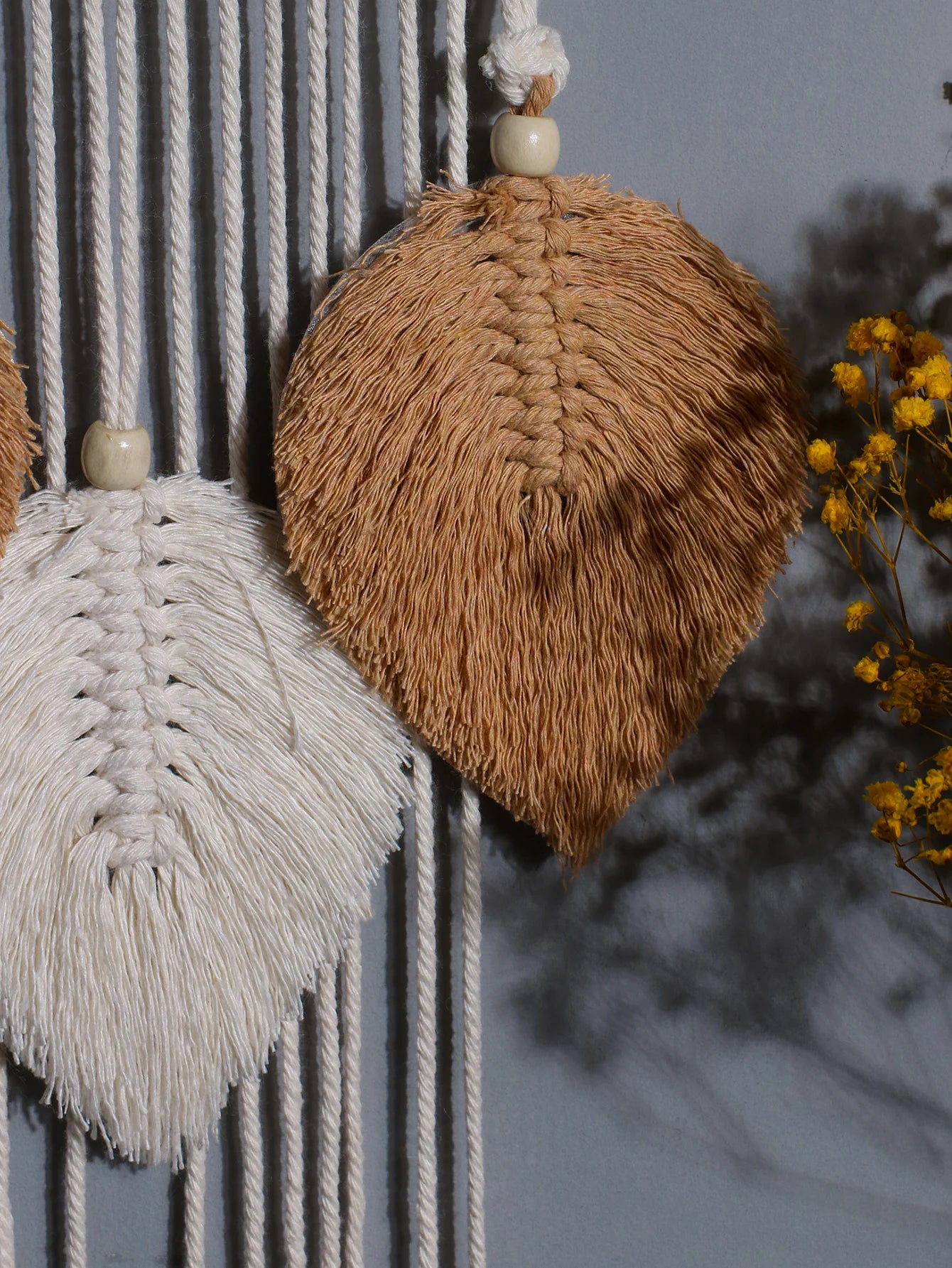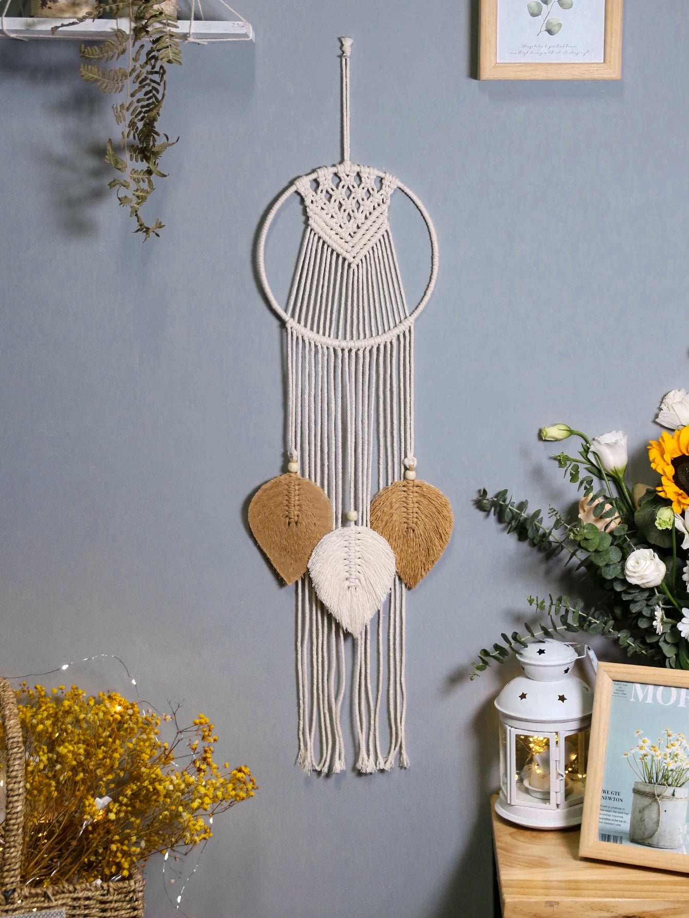 Décoration Murale Macramé Attrape-Rêves Feuille Marron Noir