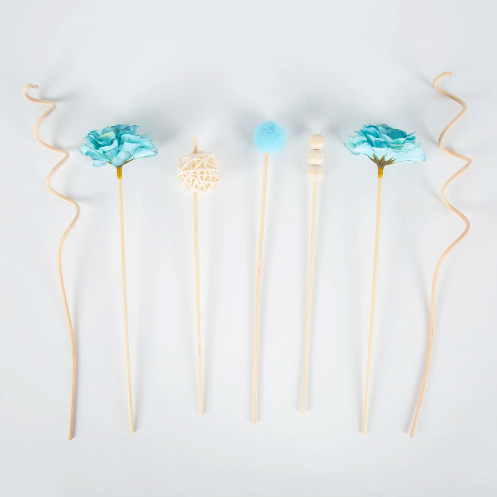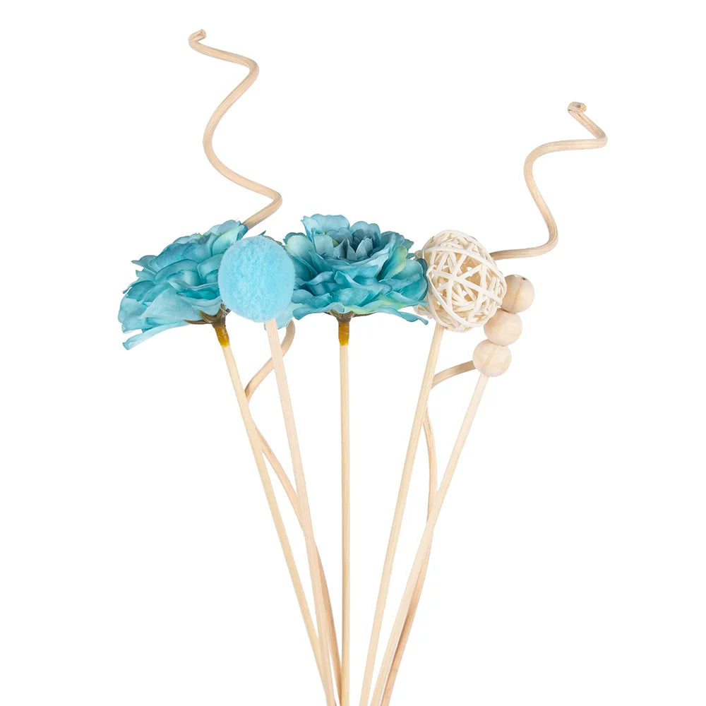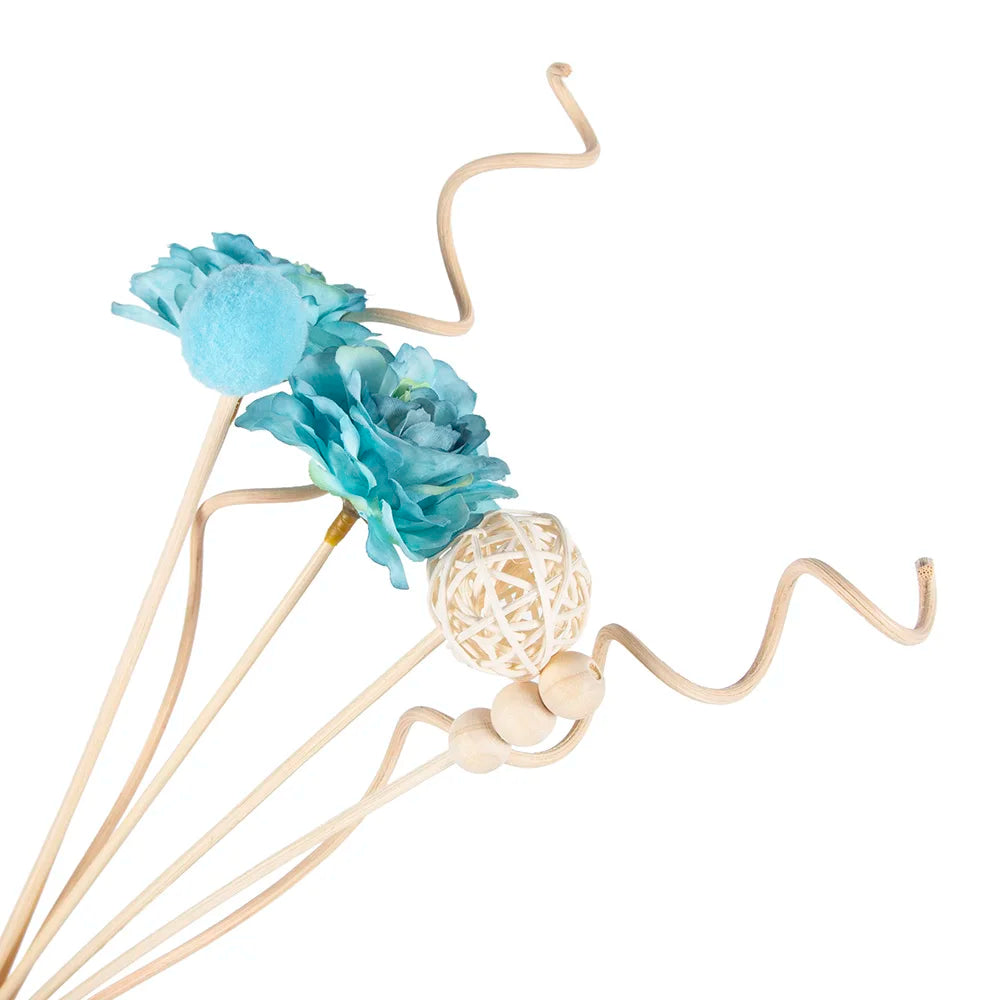 Matériau : Fleurs en rotin bleu et bâtonnets de rose.