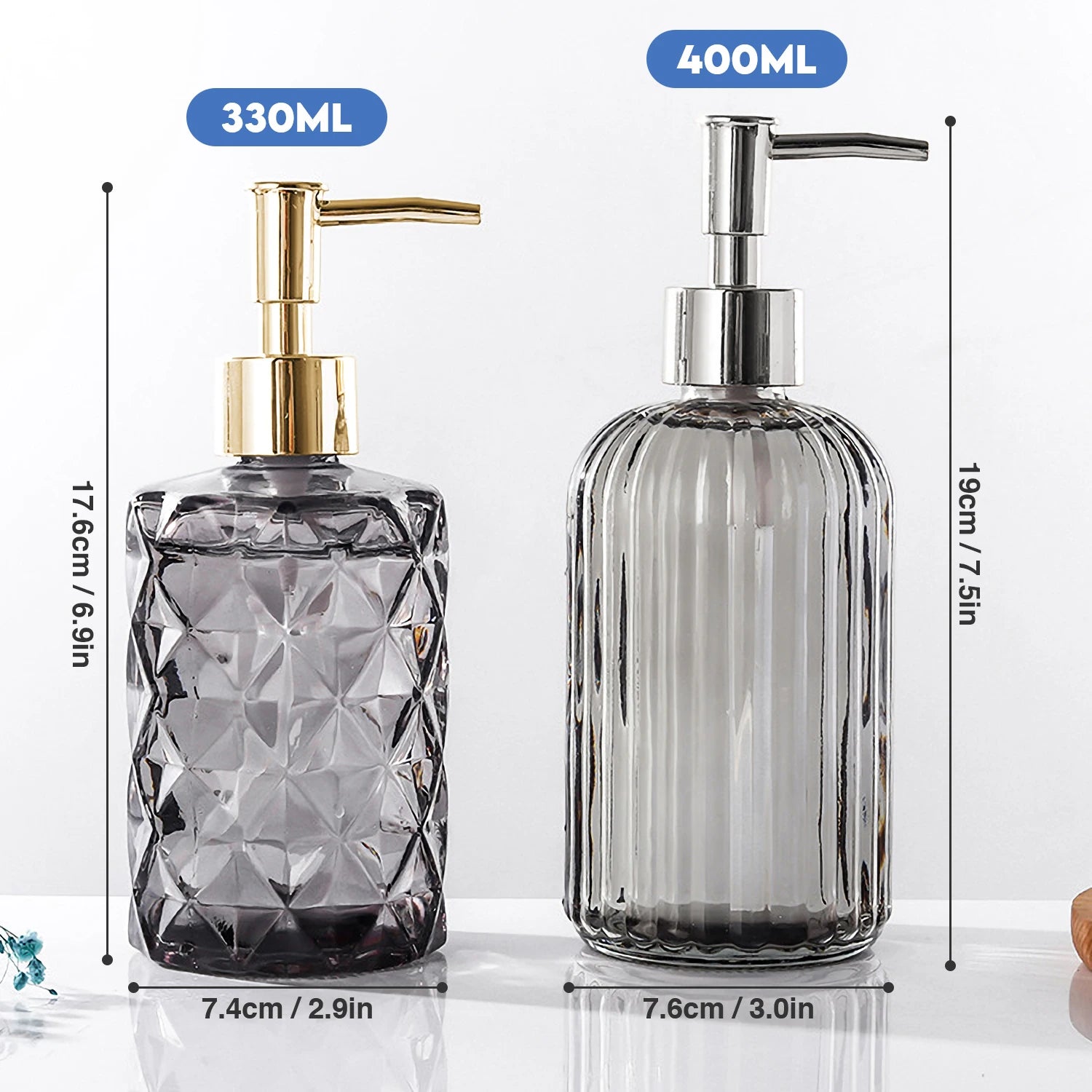 Sublimez votre salle de bain ou votre cuisine avec cet ensemble de distributeurs de savon en verre transparent, doté de pompes en acier inoxydable 304. Conçus pour offrir à la fois style et robustesse, ces flacons de 300 ml et 400 ml sont idéals pour contenir savon liquide, shampoing, lotion ou désinfectant pour les mains. Leur design intemporel s’intègre harmonieusement à tout intérieur, tout en apportant une touche de modernité et de sophistication.