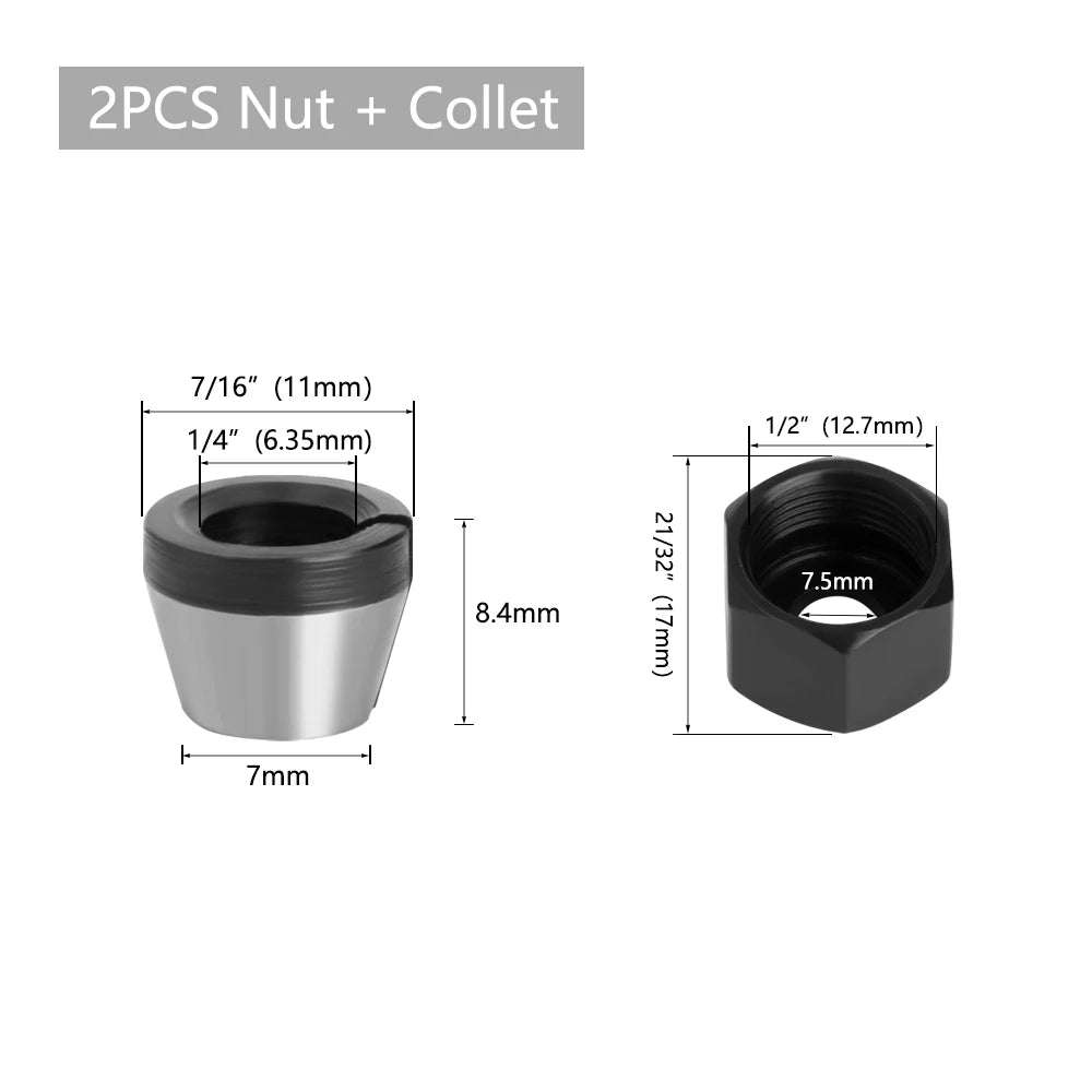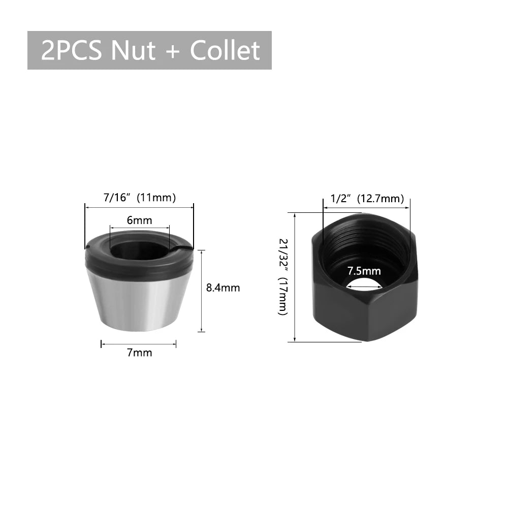 Ensemble de Pinces de Serrage 6mm, 6.35mm, 8mm avec Écrou – Accessoires de Fraiseuse Électrique