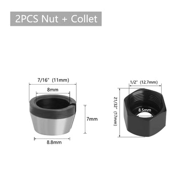 Ensemble de Pinces de Serrage 6mm, 6.35mm, 8mm avec Écrou - Accessoires de Fraiseuse Électrique