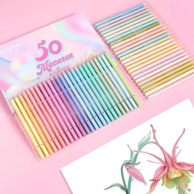 Ensemble 50 Crayons de Couleur Professionnels Brutfuner Macaron – Tons Pastel Éclatants