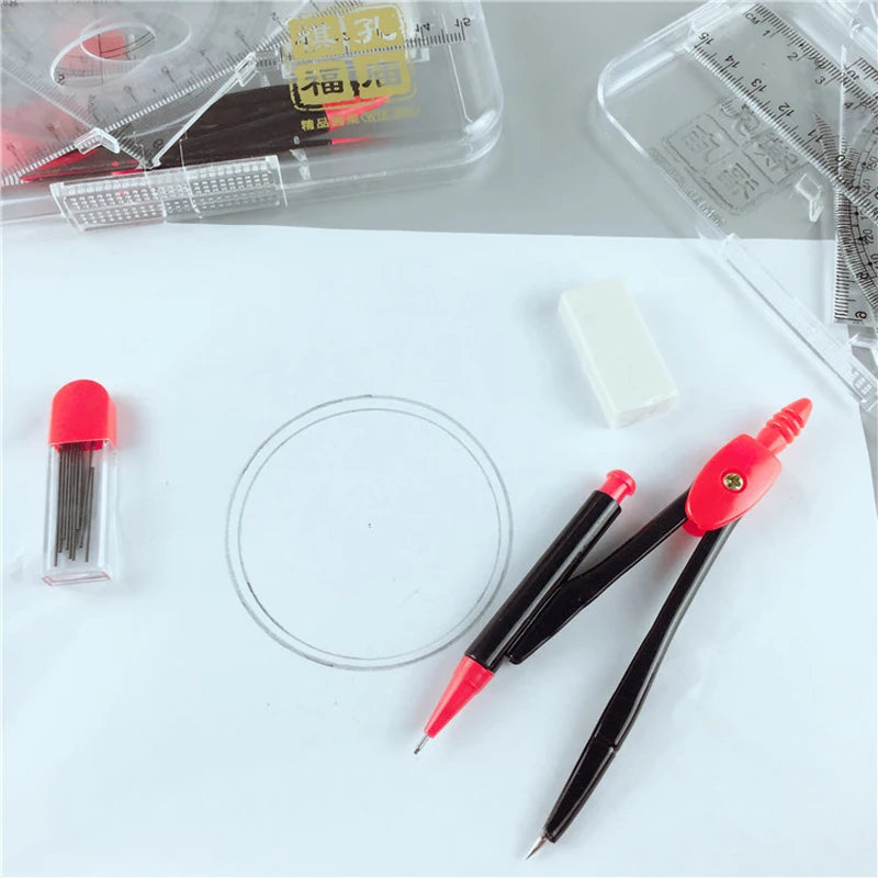 Ensemble Géométrie Scolaire 7 Pièces - Compas, Équerre, Règle, Gomme