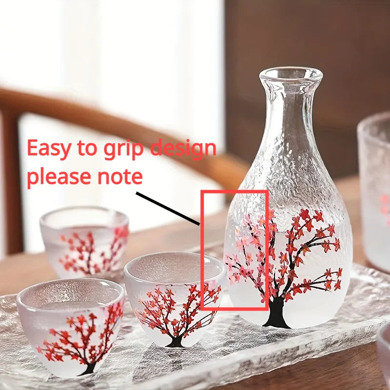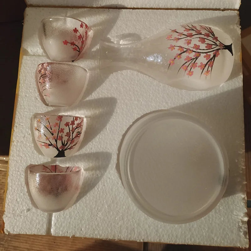 Ensemble Japonais Sake Sakura – Verres à Vin et Pichet en Verre