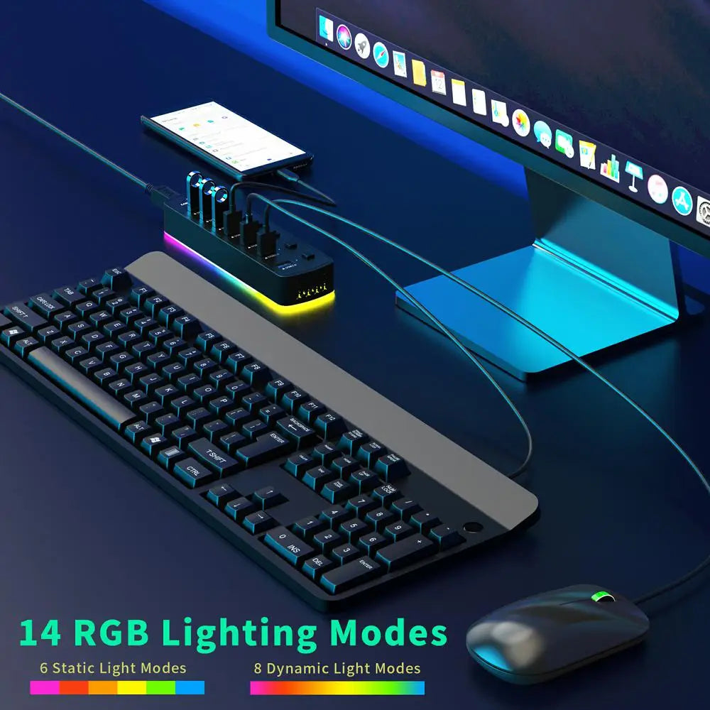 Hub USB 7-en-1 RGB Haute Vitesse – Connectivité et style pour un espace de travail optimisé
