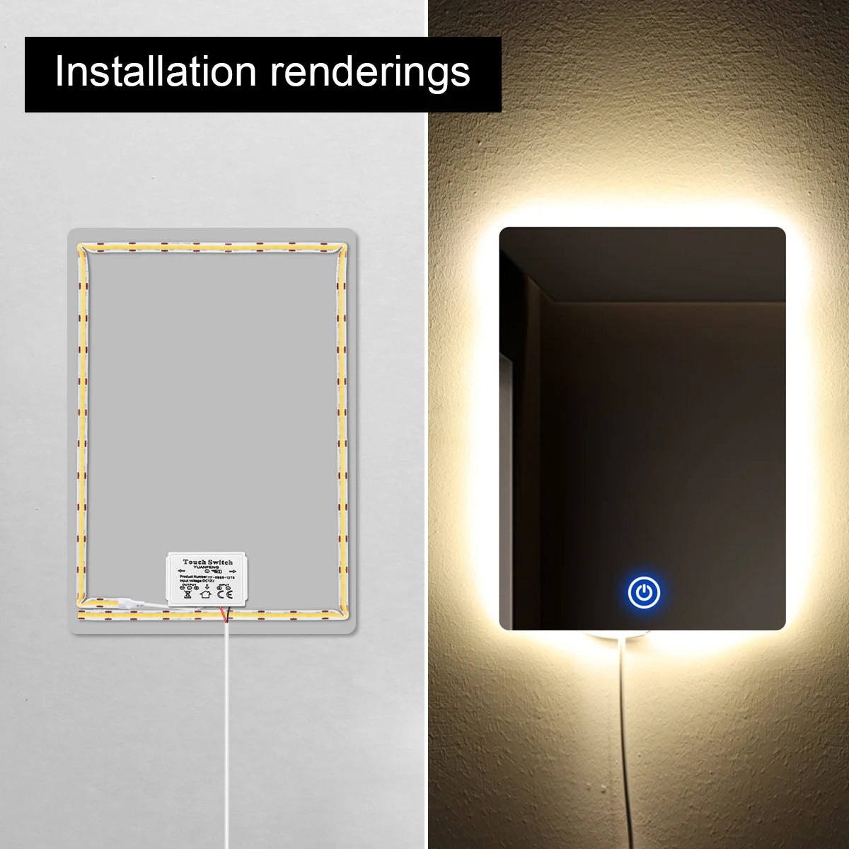 Installation rapide : Fixez l’interrupteur tactile à l’arrière du miroir LED.