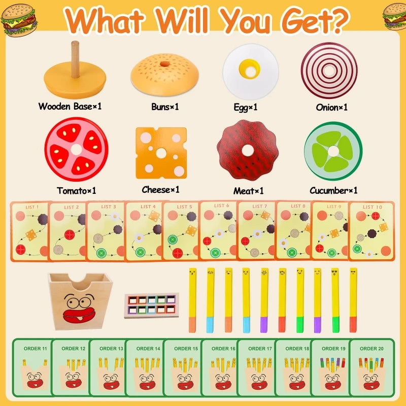 Ensemble Jouet Montessori Hamburger en Bois