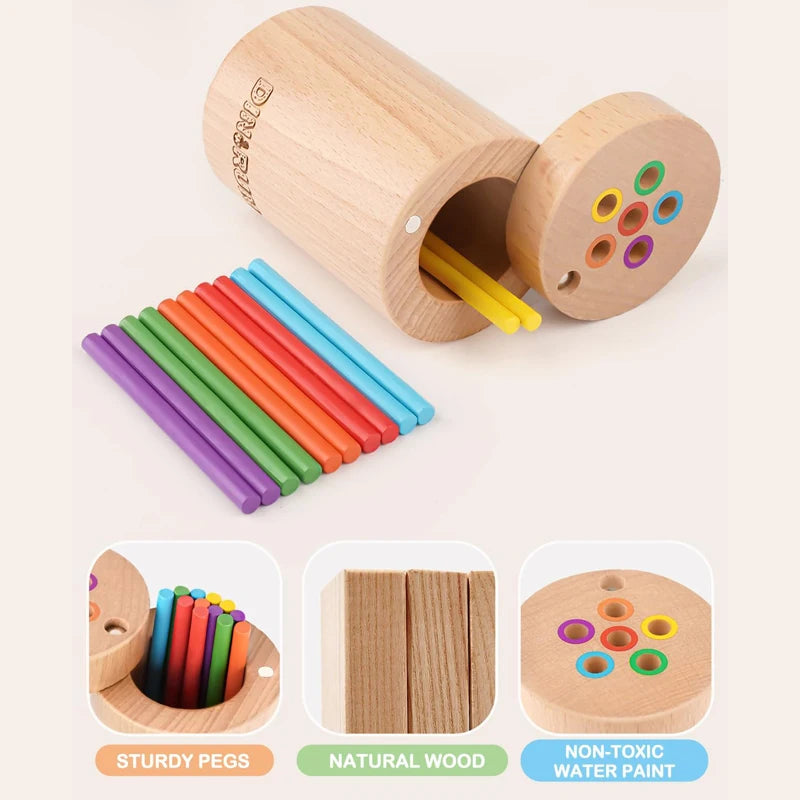 Insérez les bâtonnets en bois colorés dans les fentes correspondantes pour une expérience ludique et éducative. Encouragez le développement des compétences tout en s'amusant.