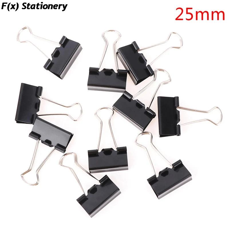 Ensemble 10 Pinces à Reliure Métalliques Noires - Organisation Bureau