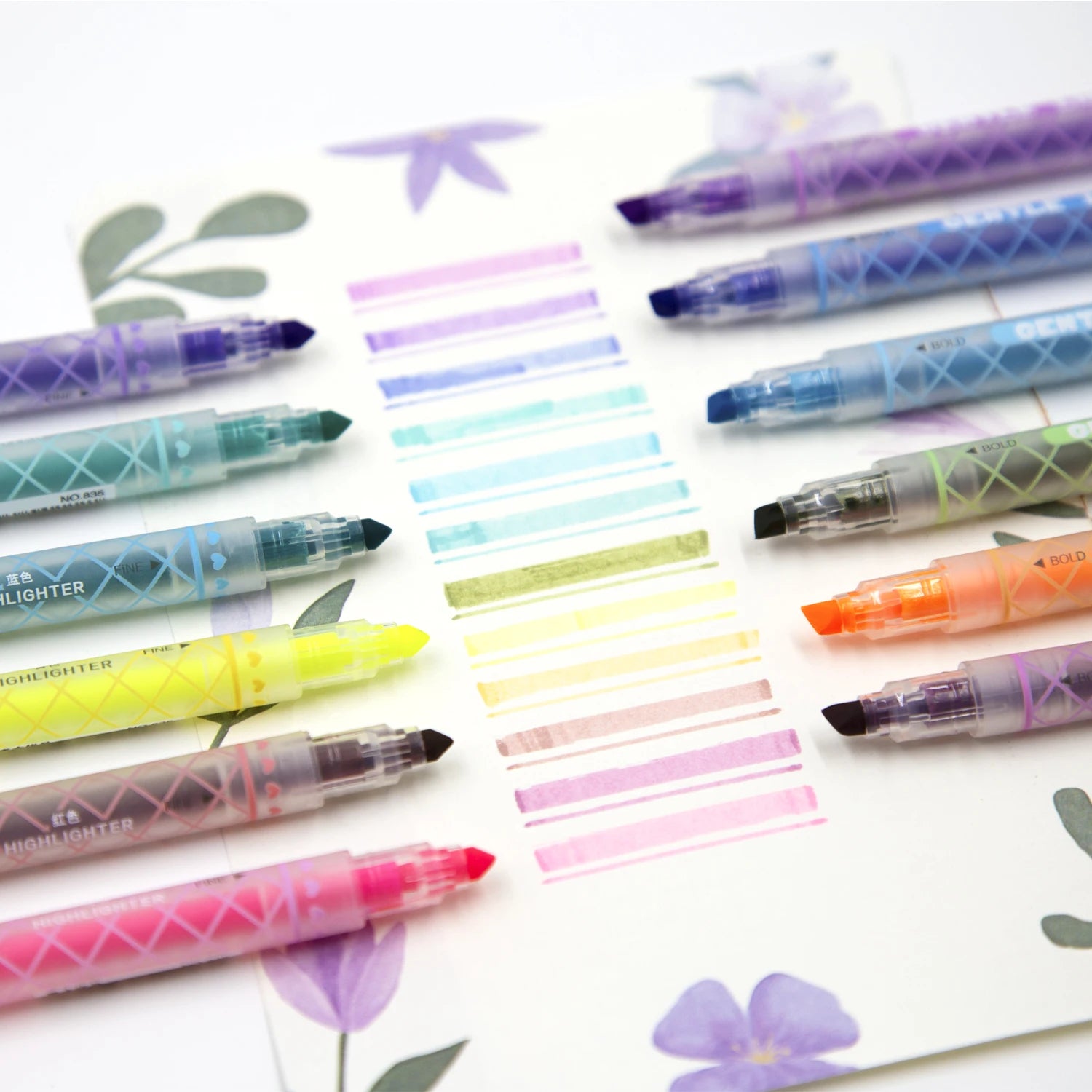 Lot de 12 Marqueurs Surligneurs Pastel à Double Pointe