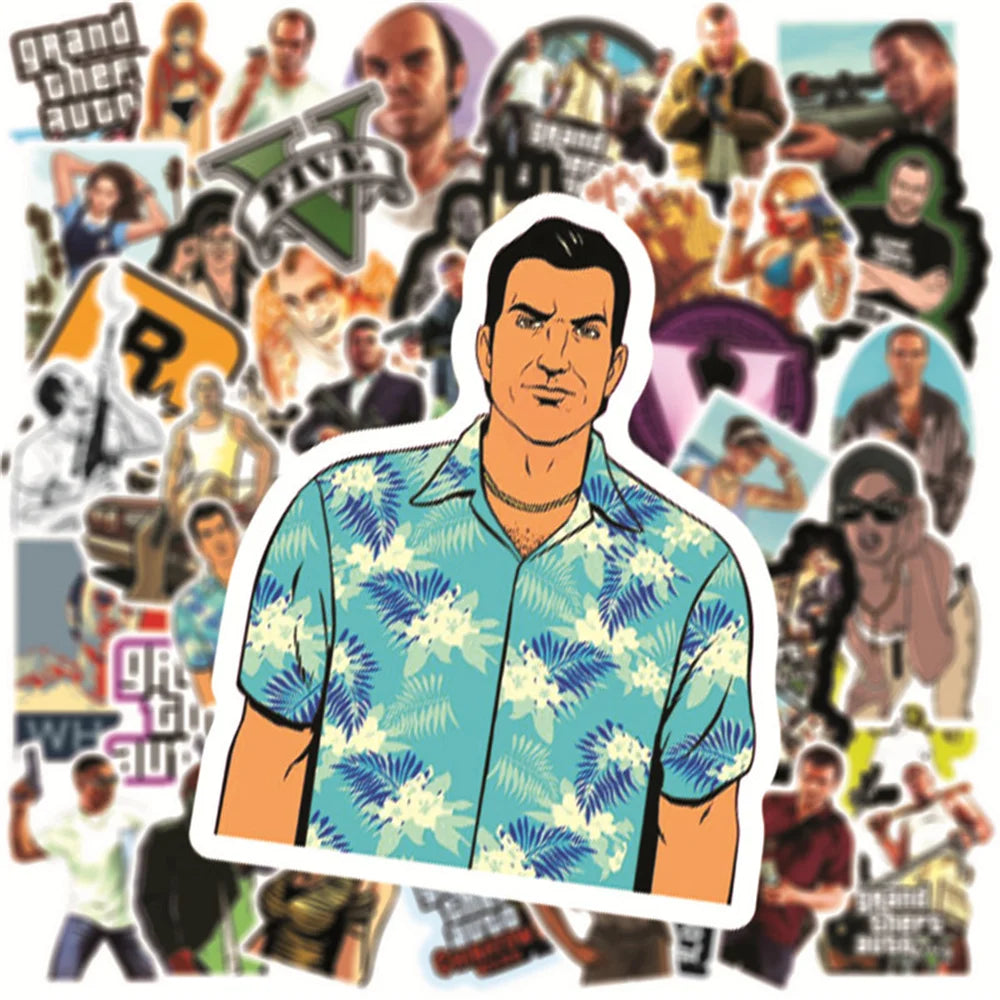 - 50 autocollants imperméables avec divers designs inspirés du jeu GTA