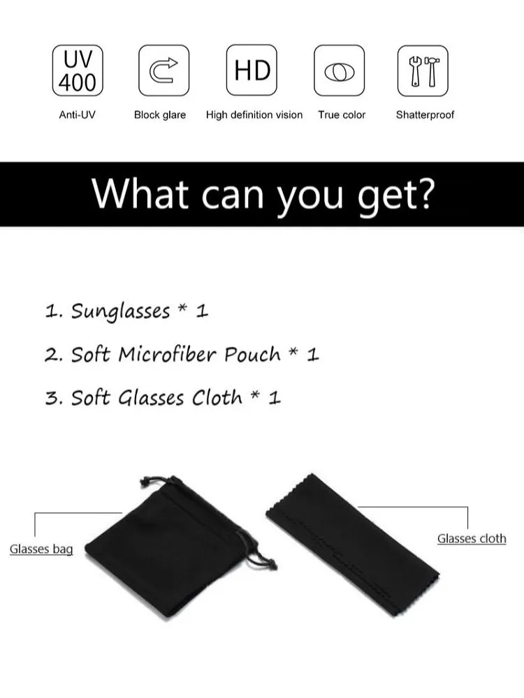 Portez ces lunettes pour allier style et protection solaire tout au long de la journée. Nettoyez-les régulièrement avec le chiffon fourni et rangez-les dans leur étui rigide pour prolonger leur durabilité. Évitez les chocs et l’exposition prolongée à la chaleur.