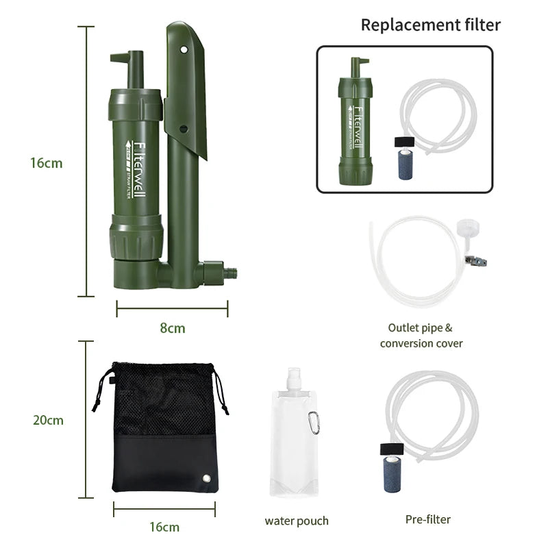 Mini Pompe à Main Filterwell – Filtre à Eau Portable pour Camping et Survie