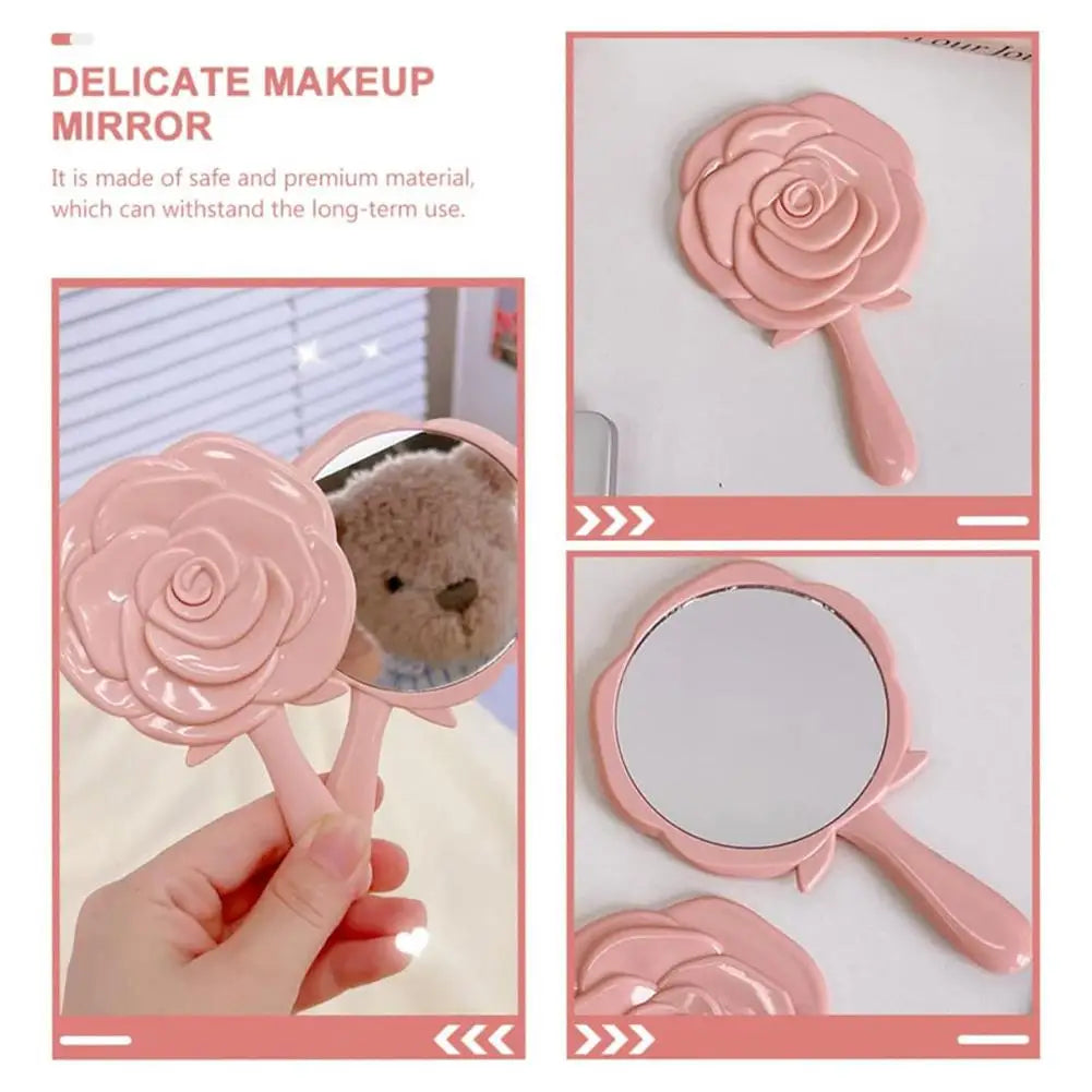 Miroir de Poche Cosmétique Fleur Rose Rétro 3D - Élégance et Praticité pour Vos Retouches Maquillage