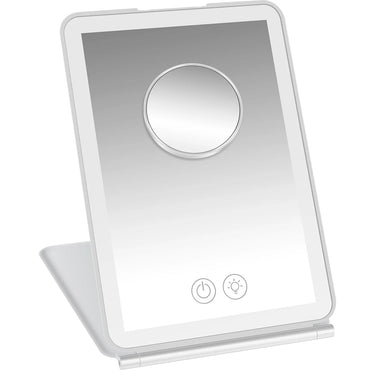 Miroir de Maquillage Portable LED 10x – Pliable, 3 Couleurs, Écran Tactile, Recharge USB