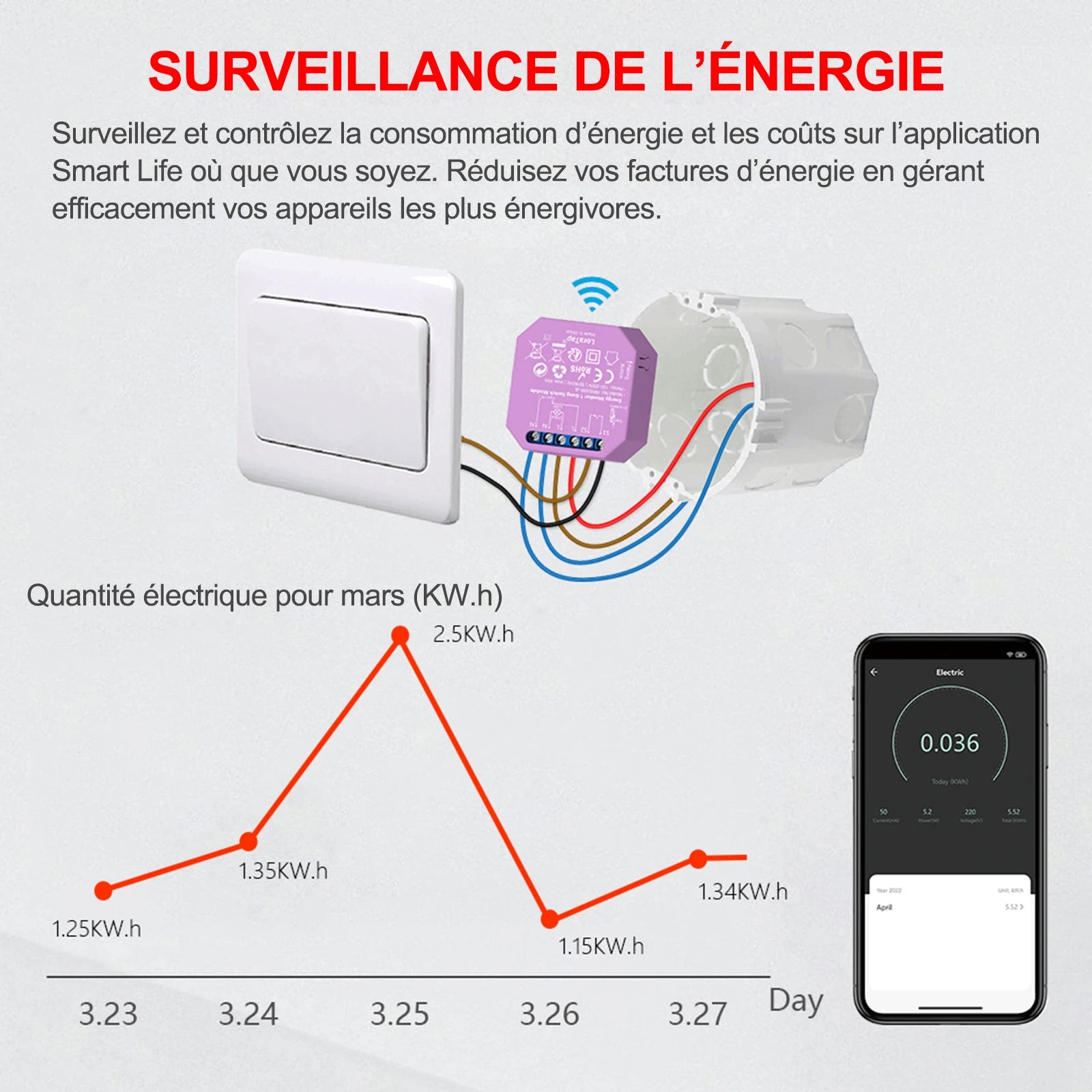 Installation facile : Conçu pour être installé dans une boîte murale standard sans modifications complexes.