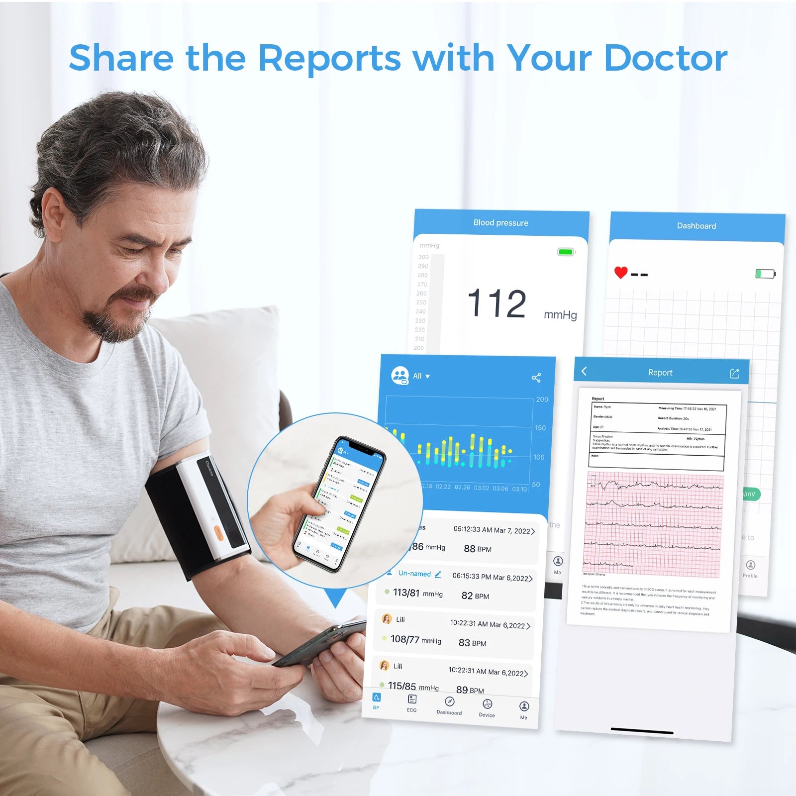 Exportation des Données : Les résultats sont transférés sans fil vers votre appareil mobile pour un suivi facile et pratique.