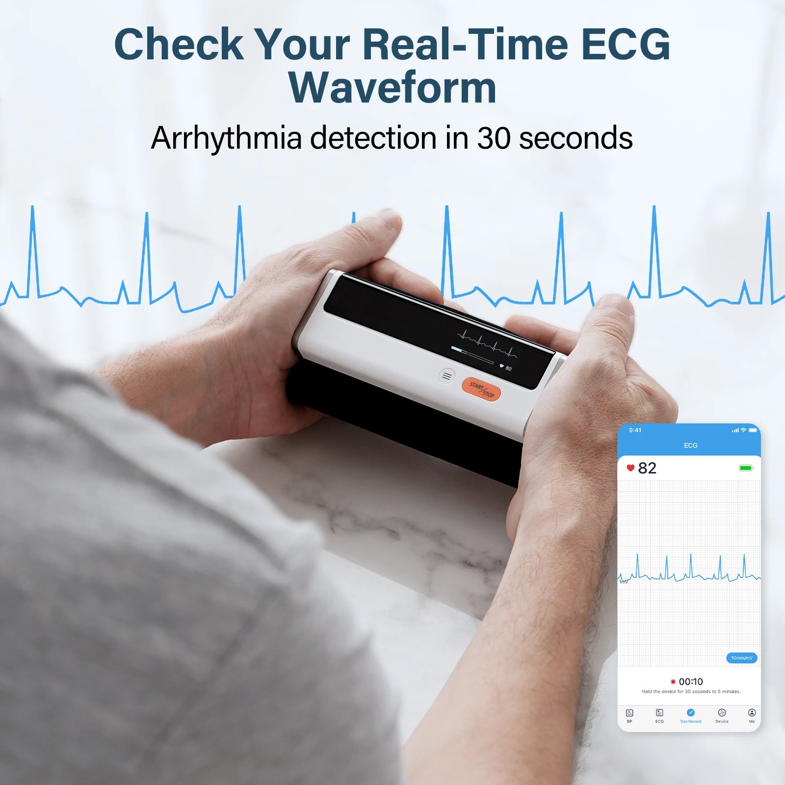 Utilisation : Destiné à la mesure de la pression artérielle et de l'ECG à des fins de dépistage, pré-vérification et suivi. Ce dispositif n’est pas conçu pour le diagnostic médical ni pour un traitement médical.