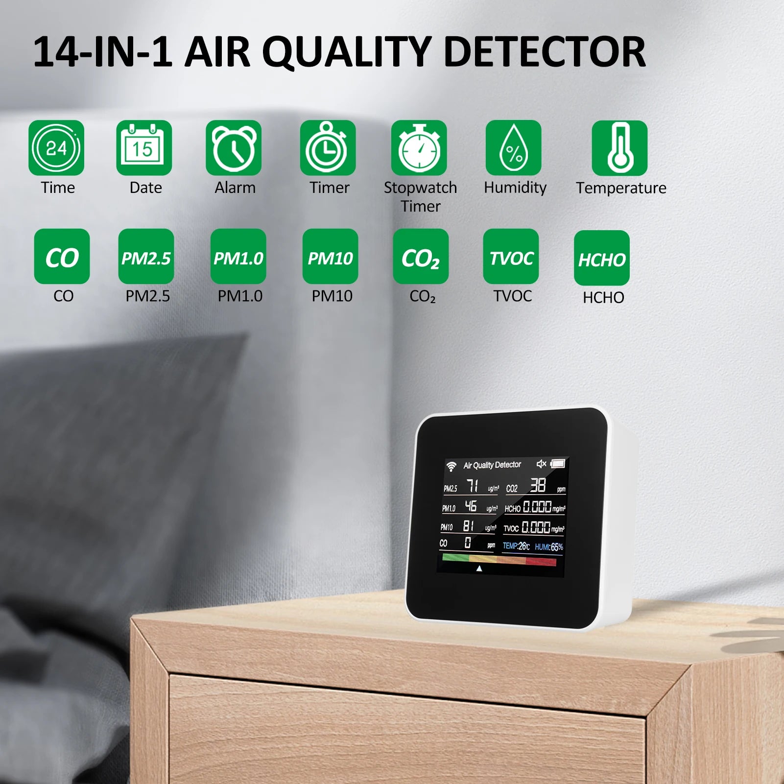 1 × Moniteur de qualité de l’air 14-en-1