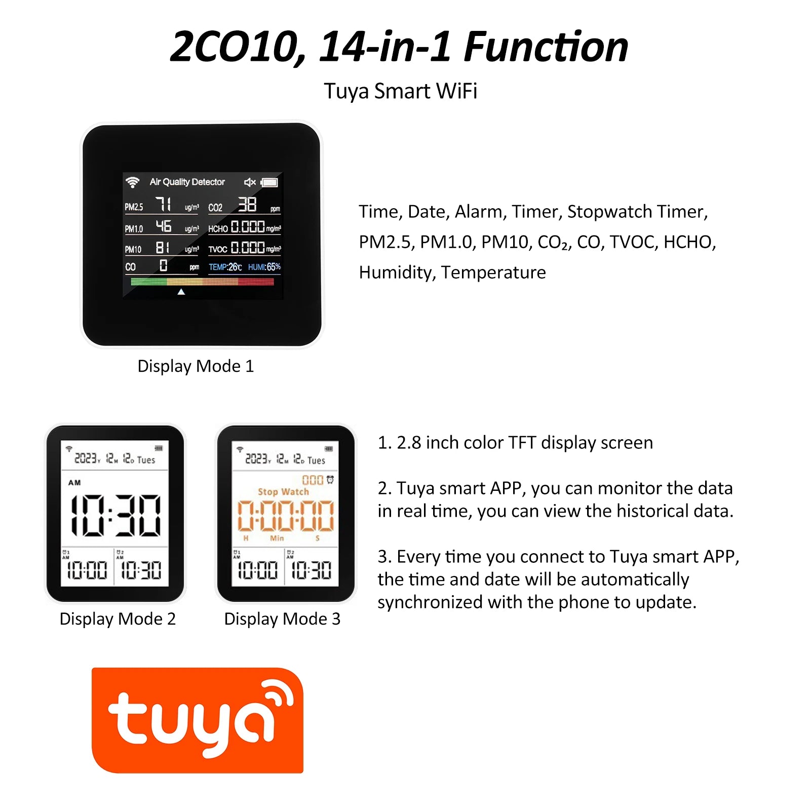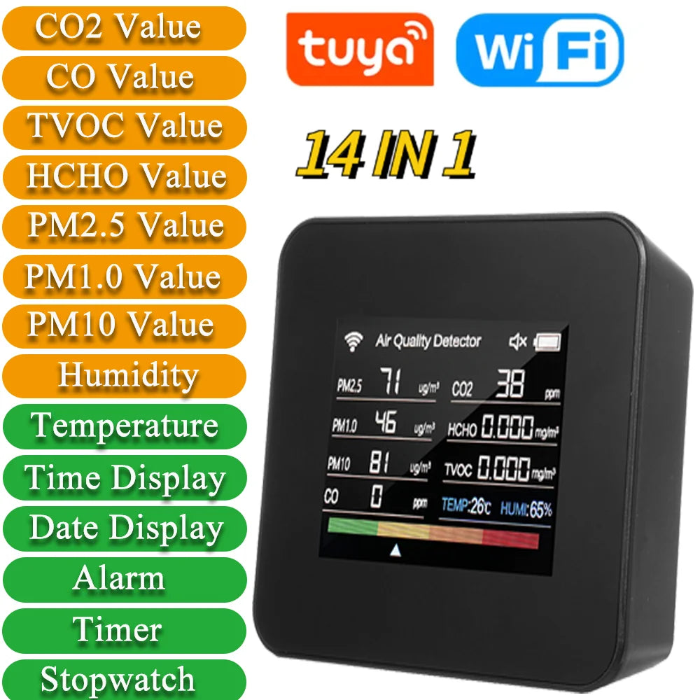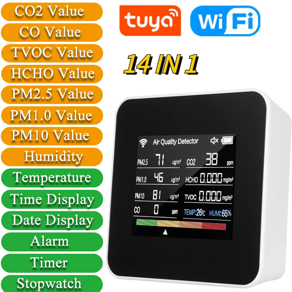 Moniteur Qualité de l’Air Connecté WiFi – 14-en-1 – Tuya Smart