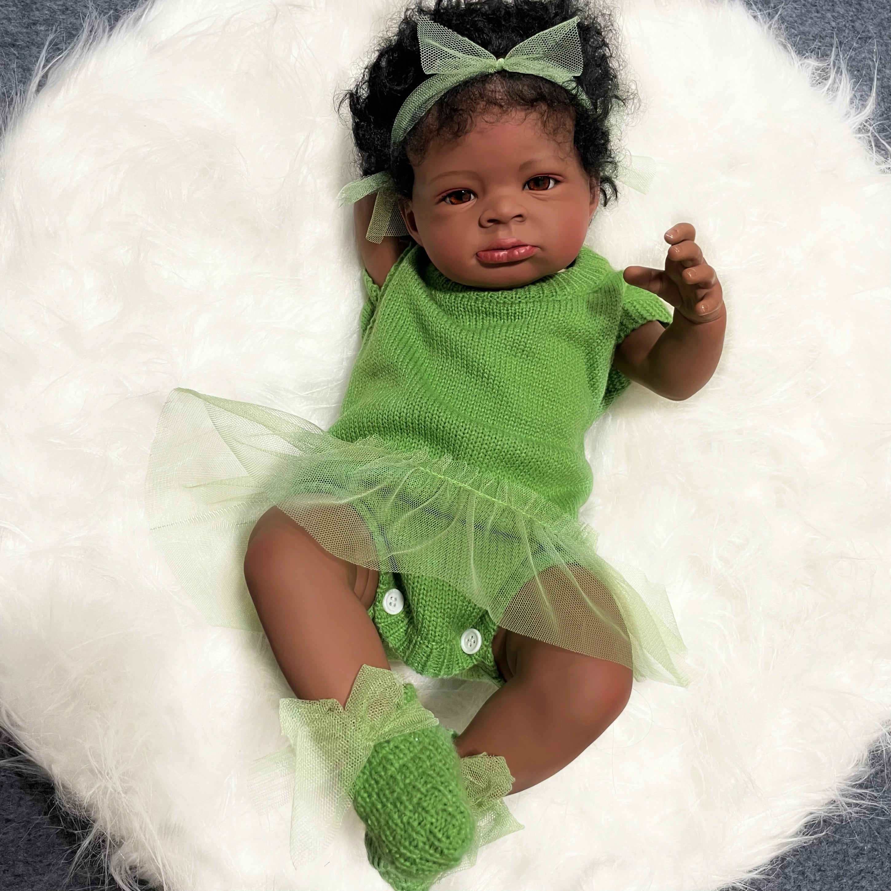 • Détails : Peau foncée, yeux ouverts de couleur brune, cils présents et cheveux enracinés à la main pour un rendu authentique.