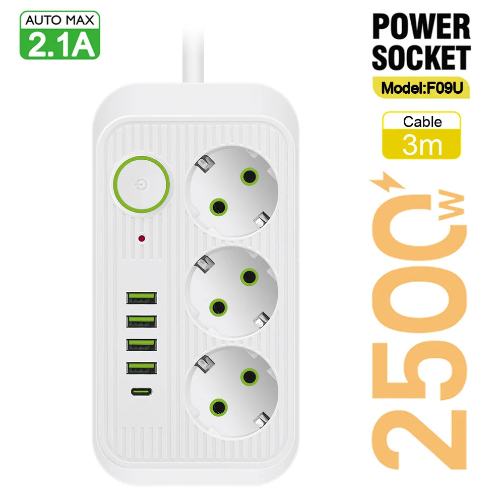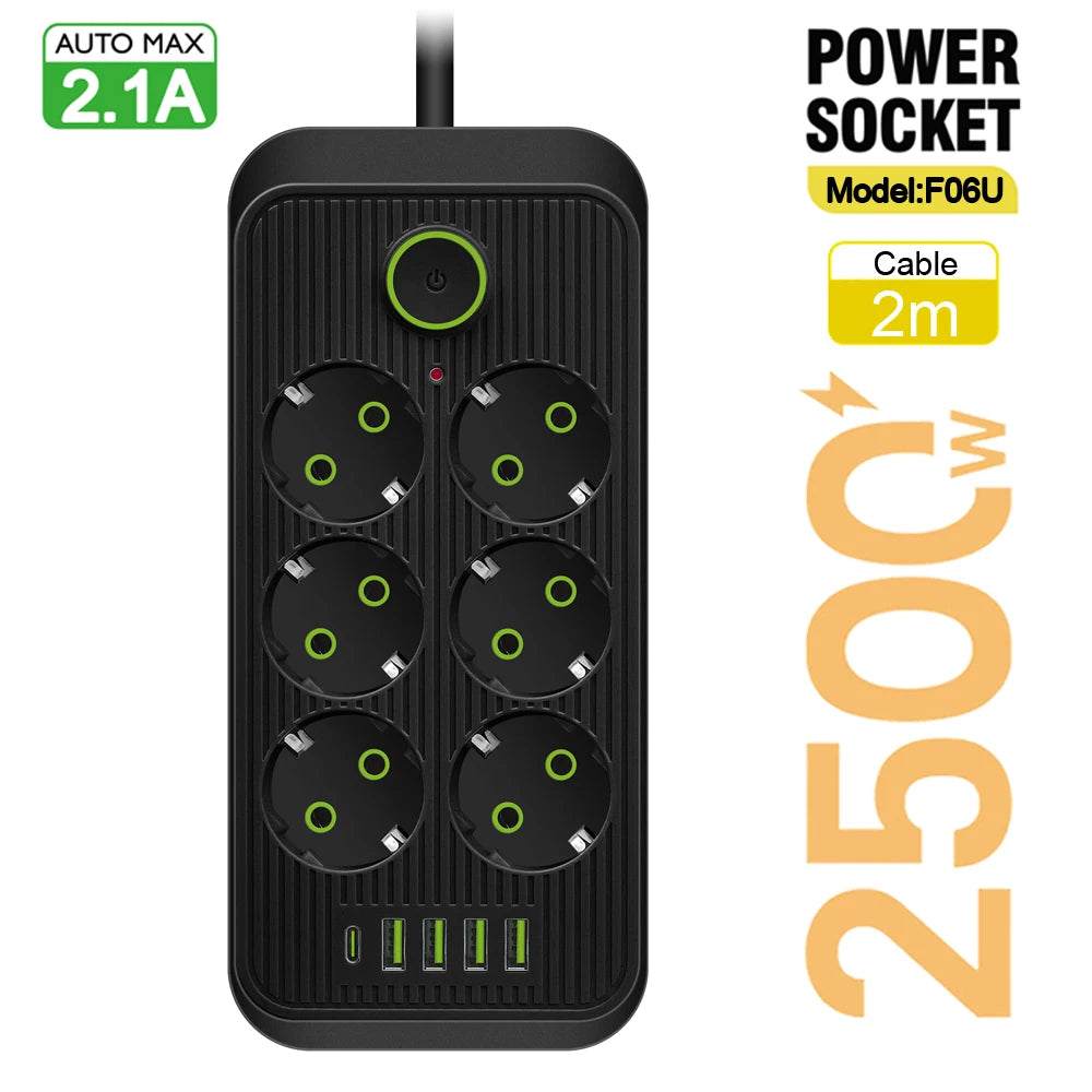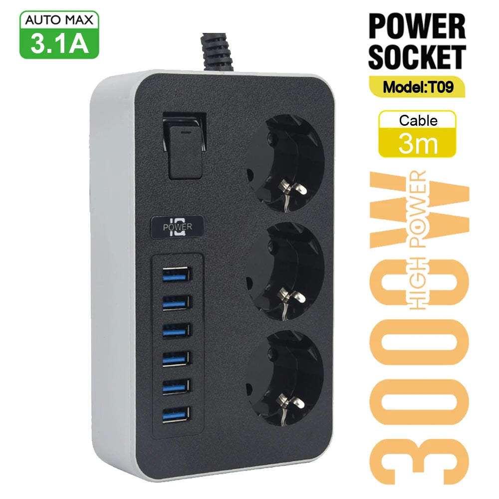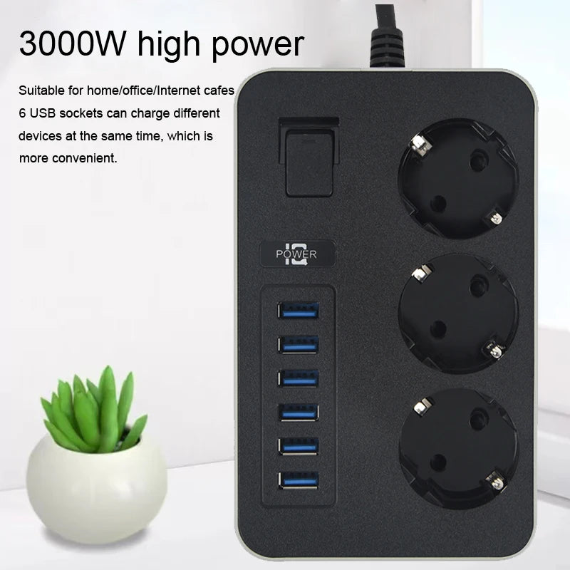 La multiprise intelligente Lehotpia 3000W est une solution pratique et fiable pour la maison et le bureau. Conçue pour alimenter plusieurs appareils simultanément, elle est dotée de 3 prises secteur EU et de 6 ports USB intégrés. Avec la technologie Quick Charge 2.0 (QC2.0), cette multiprise garantit une recharge rapide et sûre de vos appareils électroniques.