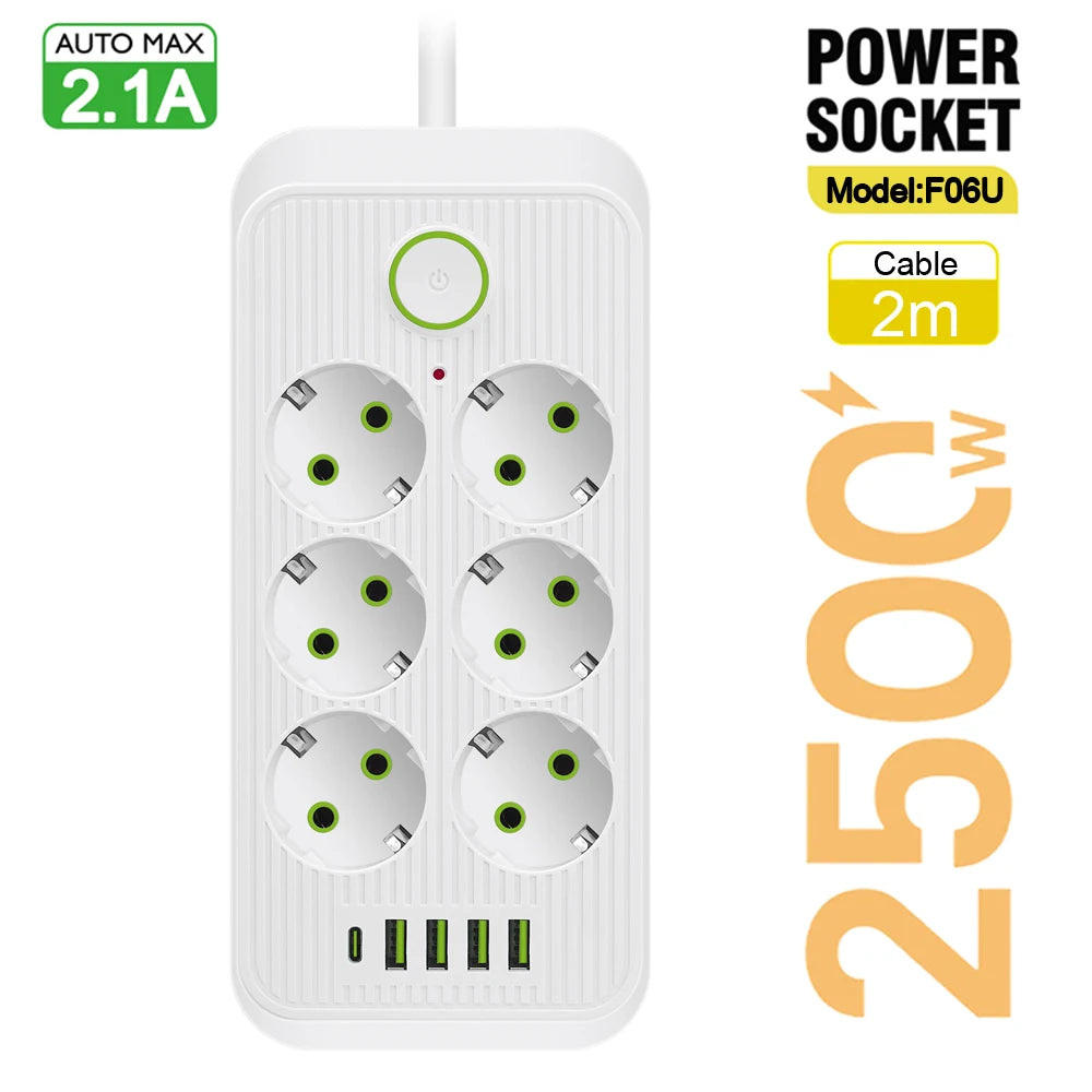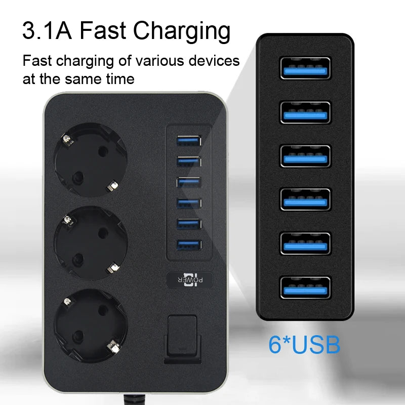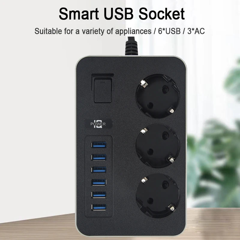 Multiprise Intelligente Domestique - Prise Secteur AC EU, 6 Ports USB, Charge Rapide 3.1A