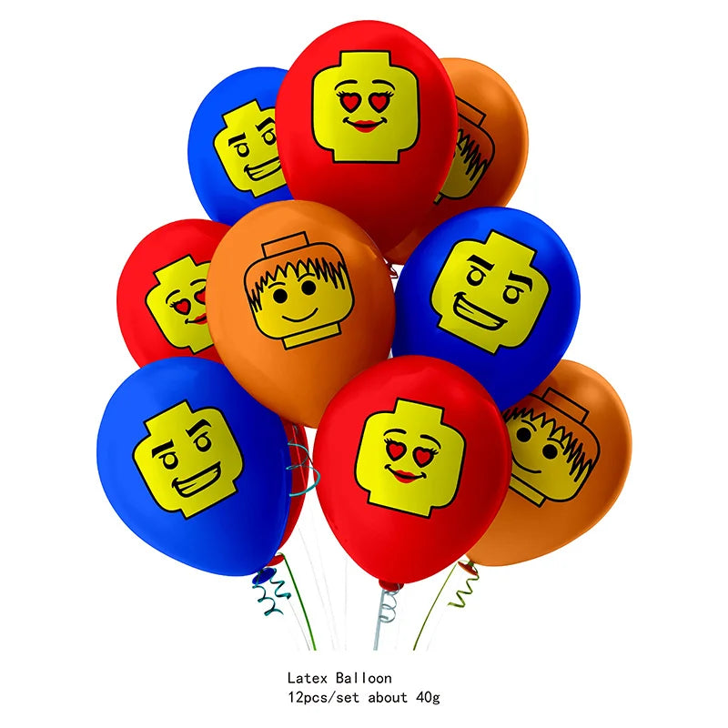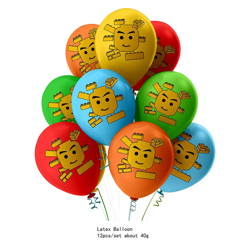 - 12 ballons latex avec des motifs de blocs et briques ninja (en 5 couleurs)