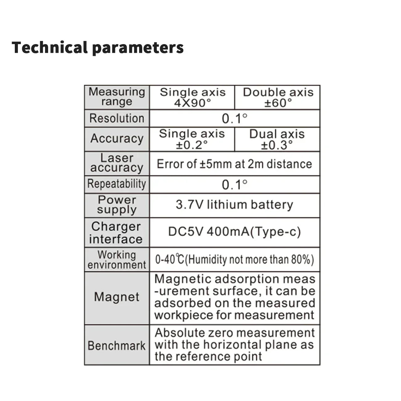 Précision : Axe unique ±0.2°, axe double ±0.3°