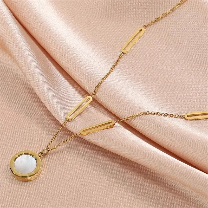 Nouveau Collier Pendentif Numérique Romain en Acier Inoxydable - Élégance Soirée Femmes