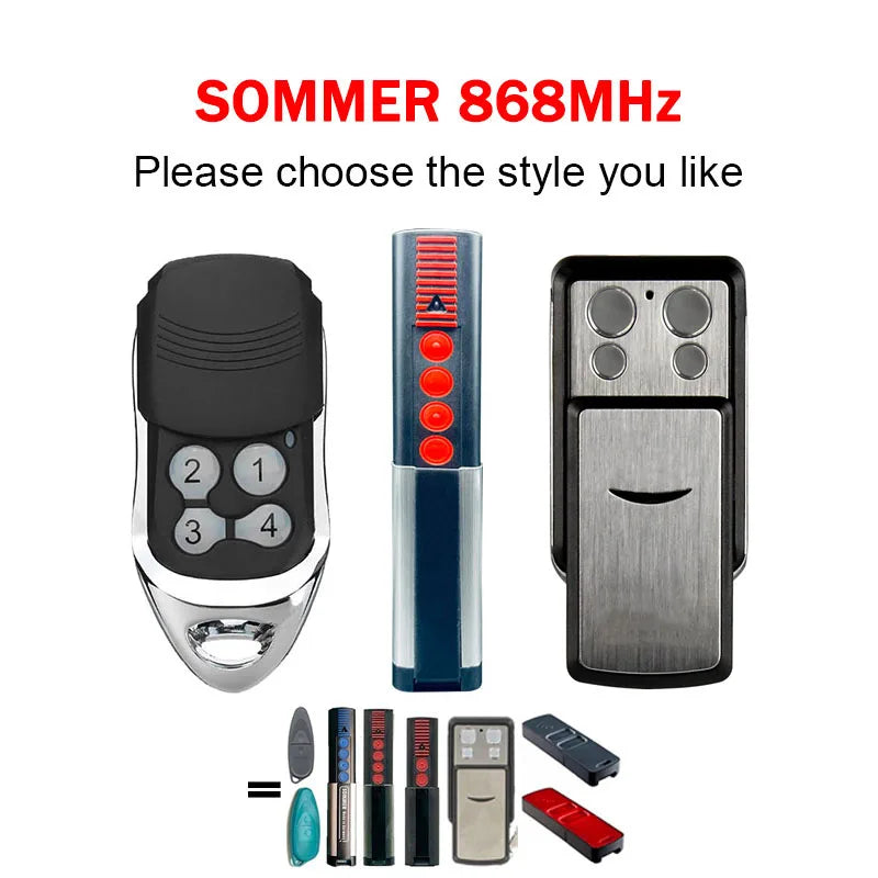 Compatible avec les modèles APERTO 4021, APERTO 4025, SOMMER 4011, SOMMER 4025, SOMMER 4031, SOMMER 4035, SOMMER 4025 BLUE, SOMMER 4026 TX03-868-2, et SOMMER 4020 TX03-868-4. Veuillez vous assurer d'avoir accès à votre récepteur/opérateur avant l'achat.