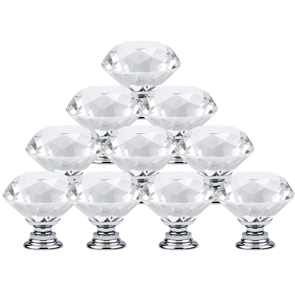 Lot de 10 Boutons de Tiroir en Cristal Diamant – Poignées Élégantes pour Armoires et Meubles