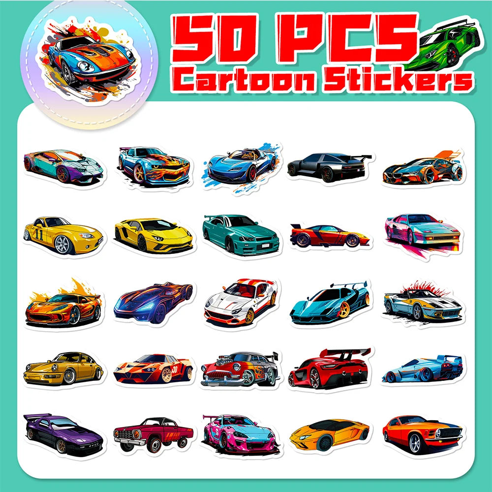 Pack Autocollants Graffiti Voiture Course - 50 Stickers Résistants en Vinyle