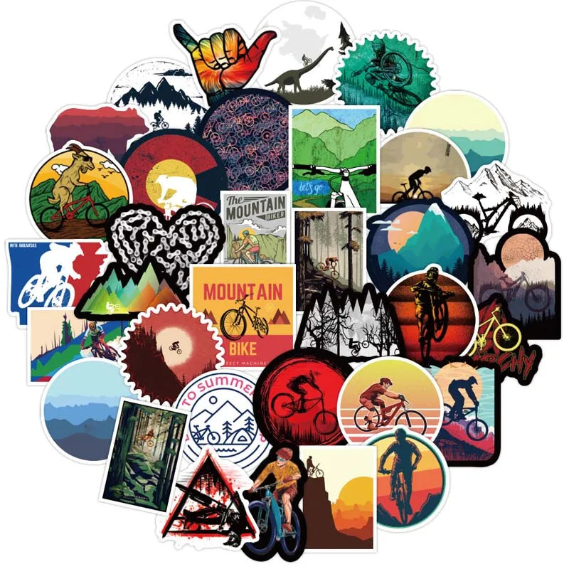 Pack de 50 Autocollants pour Vélo - Vinyles Imperméables, Montagne & Route