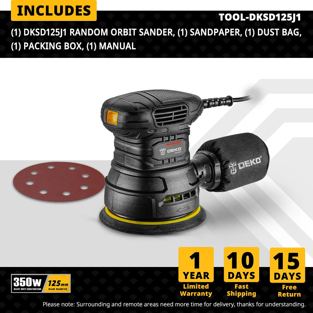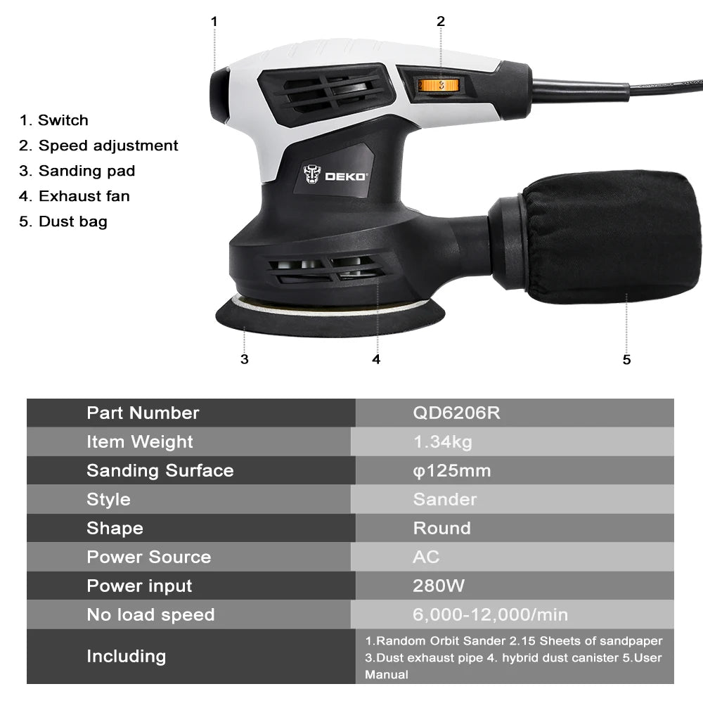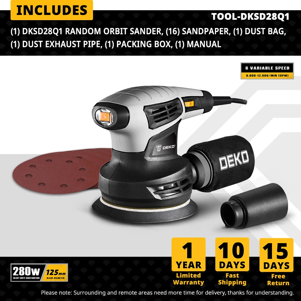 Ponceuse Orbitale Aléatoire DEKO 280W/320W/350W – Performance, Précision et Fiabilité