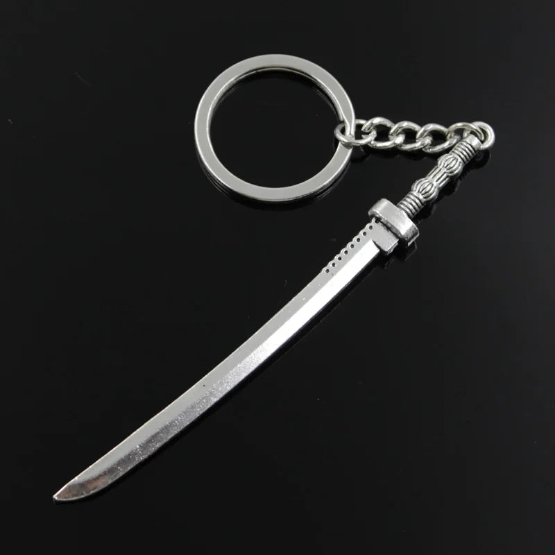 Porte-clés en métal vintage - Épée samouraï argentée pour hommes