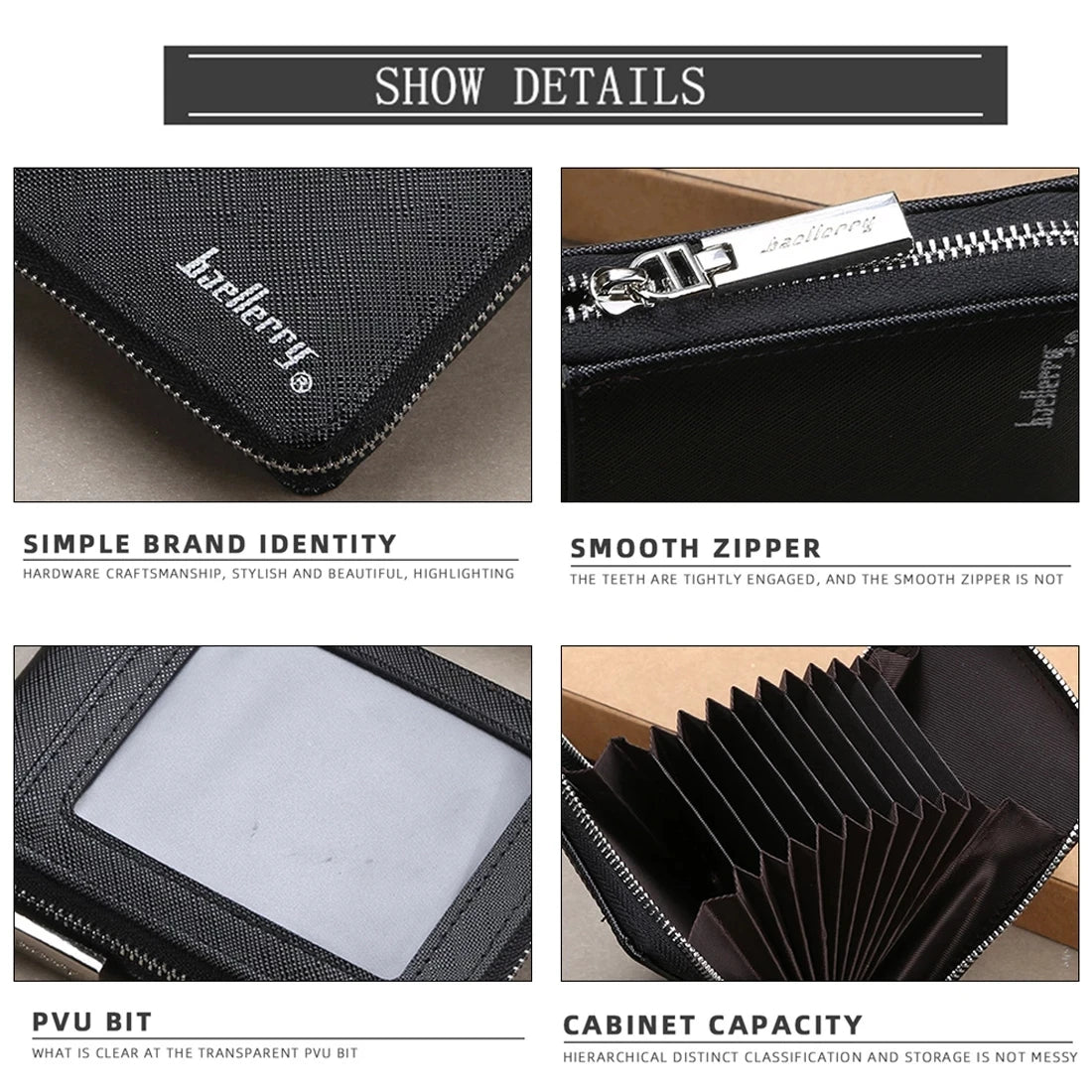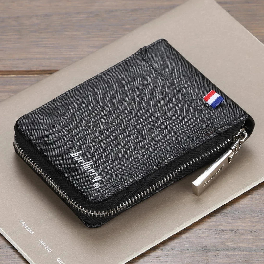 Portefeuille Homme Court Multifonctionnel en PU avec Fermeture Éclair