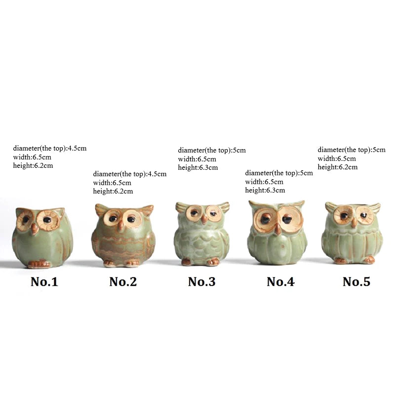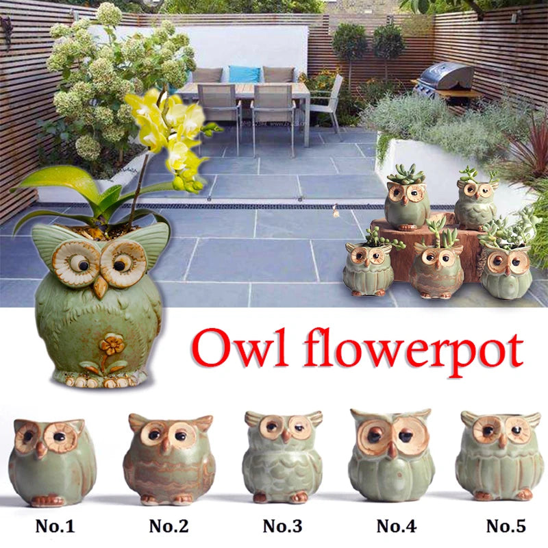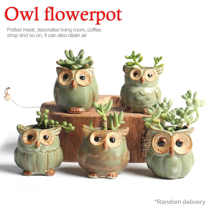 - 1 pot à plantes en céramique en forme de hibou (style envoyé aléatoirement)