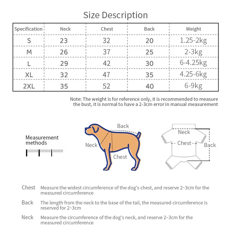 Ce vêtement a été minutieusement conçu et fabriqué en Chine, garantissant ainsi une qualité de production conforme aux standards internationaux. Chaque pull est livré avec un seul modèle de vêtement pour animal, prêt à être utilisé. Les mesures ont été prises manuellement avec une marge d’erreur de 2 à 3% et les variations de couleurs dues aux réglages d’affichage peuvent survenir.