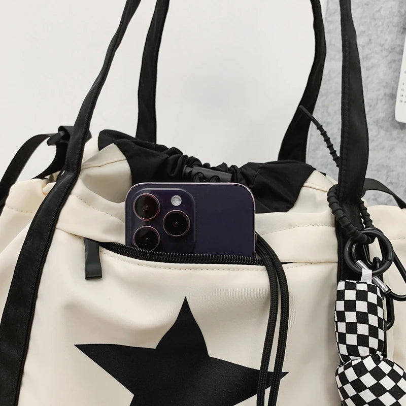 Le Sac Bandoulière Nylon Imperméable Pentagramme est l'accessoire polyvalent et élégant idéal pour toutes vos sorties. Doté d'une grande capacité et d'un design unique, ce sac unisexe de Moods Boutique est parfait pour le shopping, les voyages ou une utilisation quotidienne.