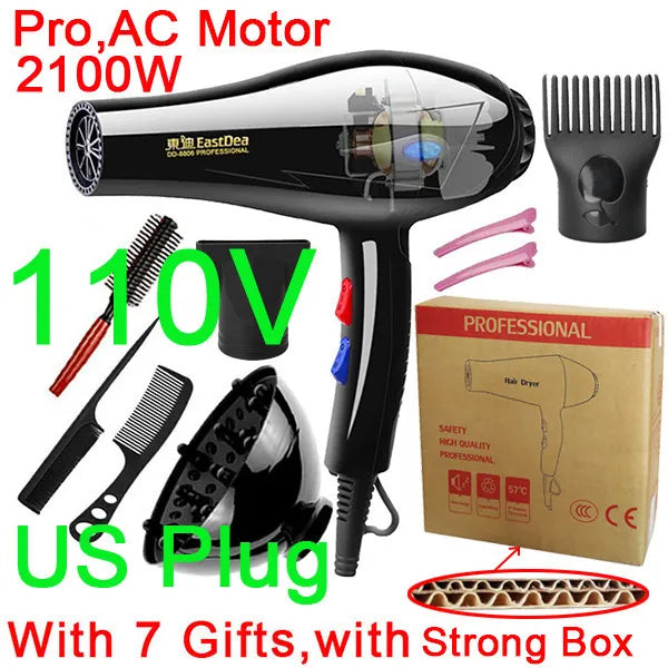 Sèche-cheveux Professionnel 1800W/3800W - Fonction Air Chaud/Froid - Prise US/EU 110V/220V