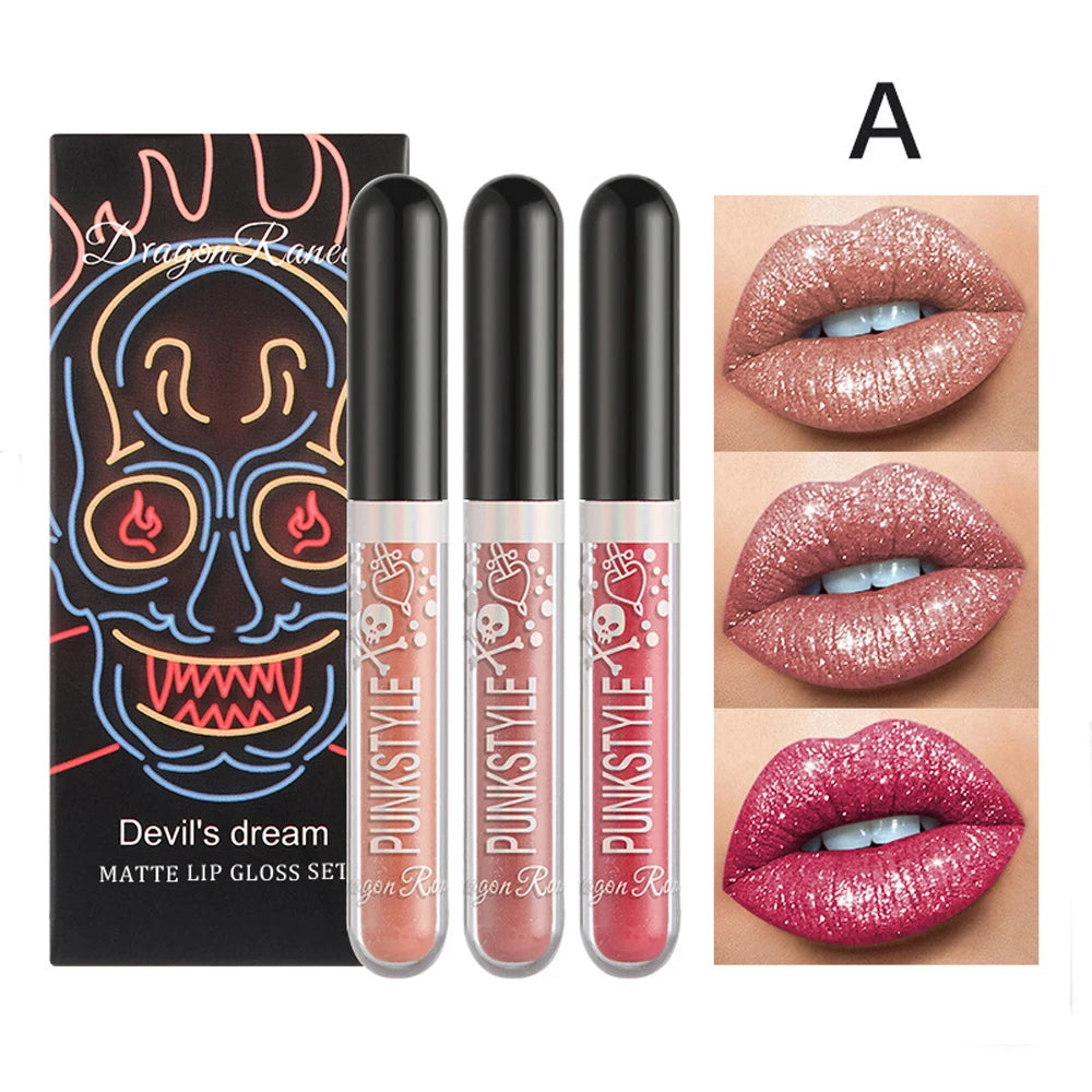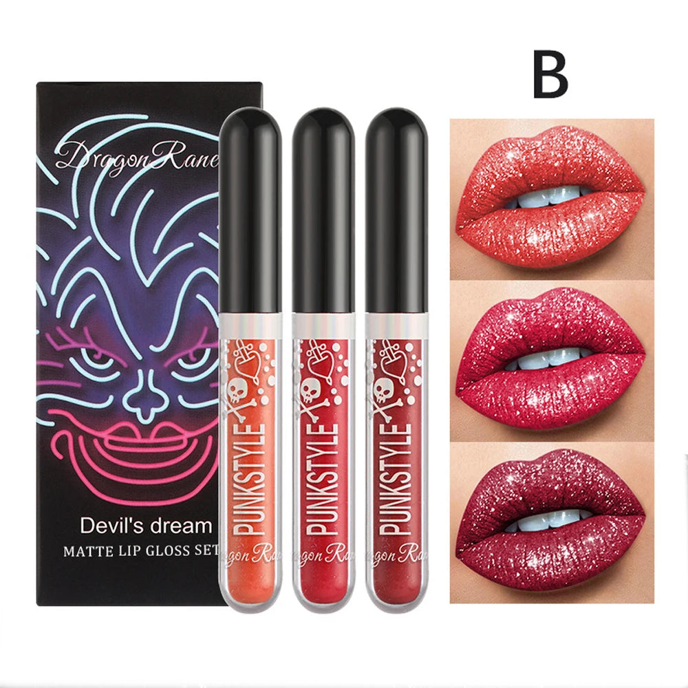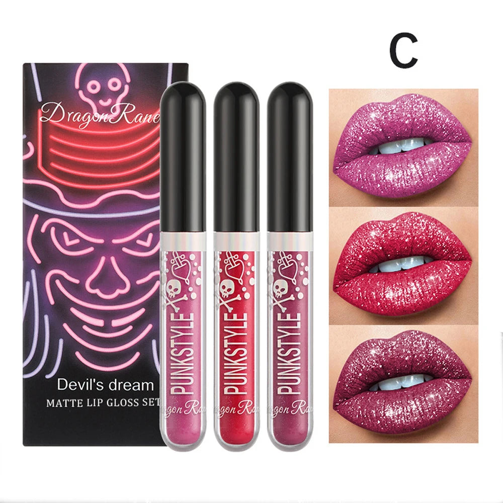 Ensemble de 3 Rouges à Lèvres Scintillants Diamant Longue Tenue