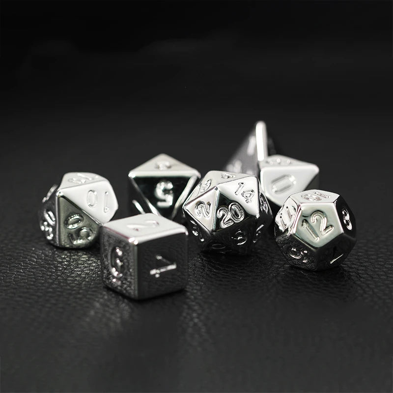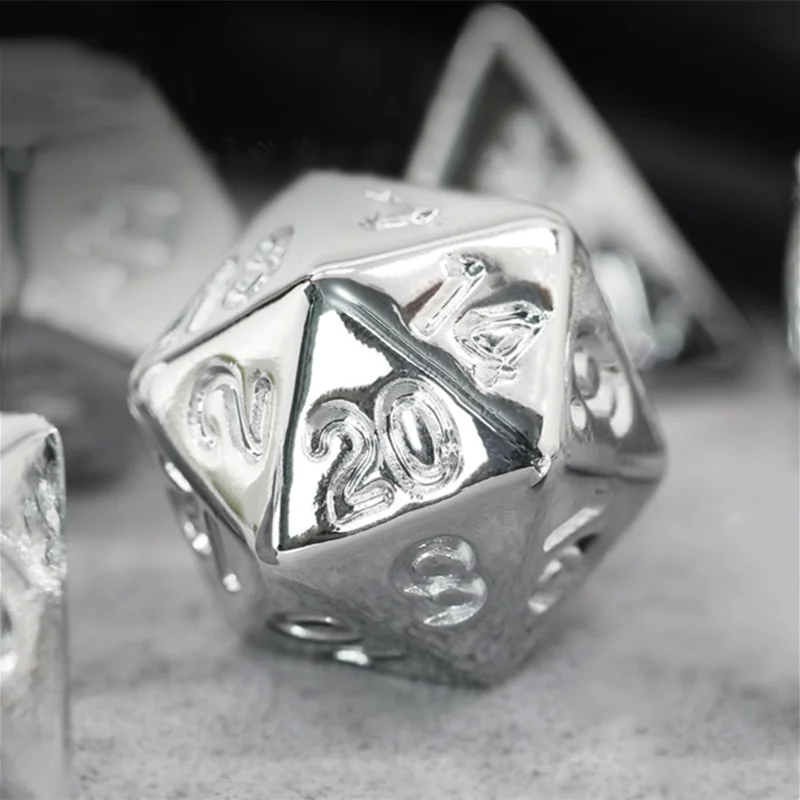 Set de 7 Dés Plaqués Argent pour Jeux de Rôle – D&D, COC, Pathfinder