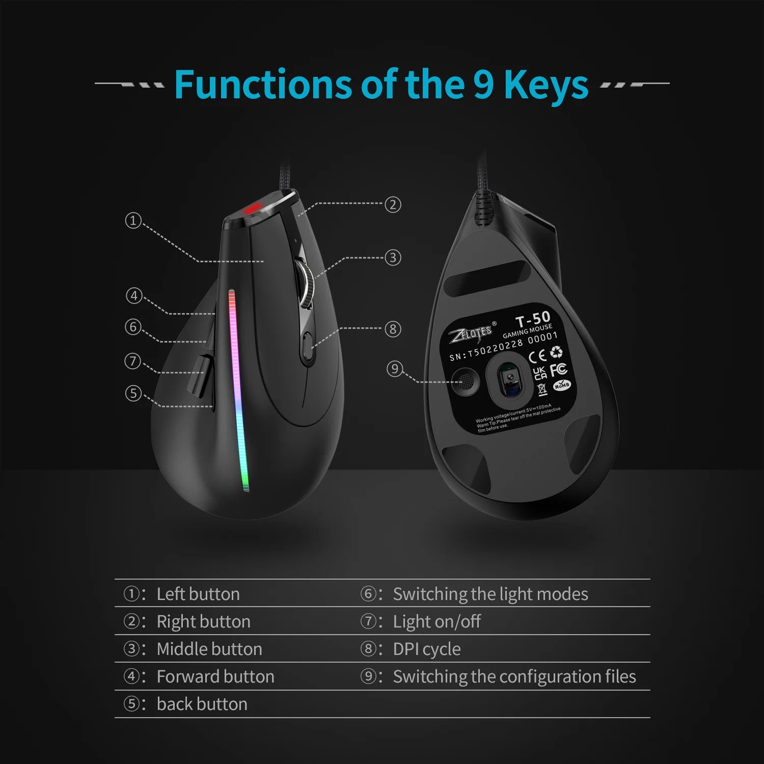 Ergonomie : Le design vertical est spécialement conçu pour minimiser la pression sur les poignets, offrant ainsi plus de confort lors de longues sessions de jeu.
