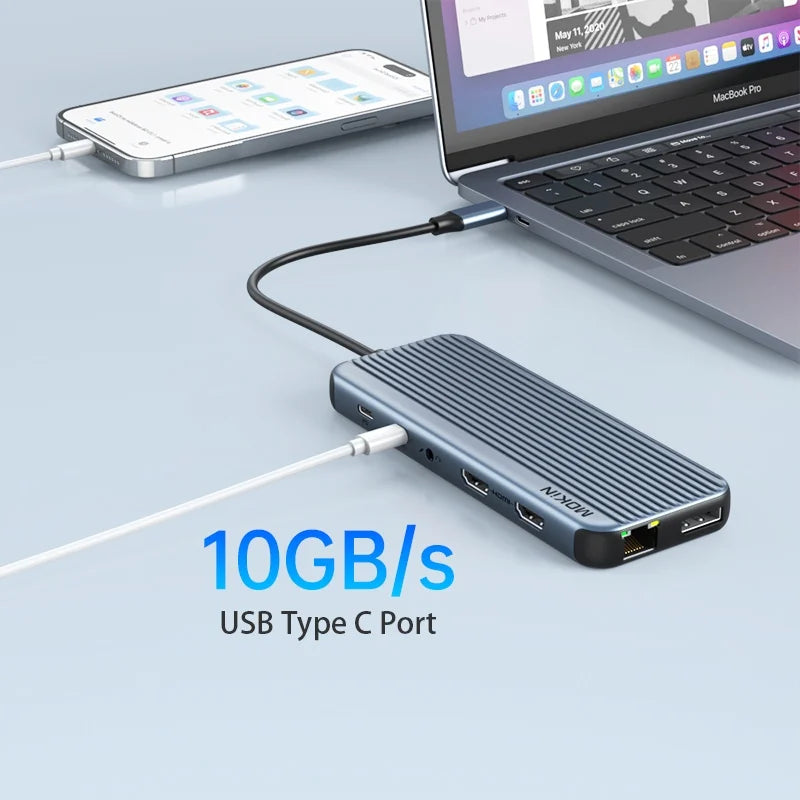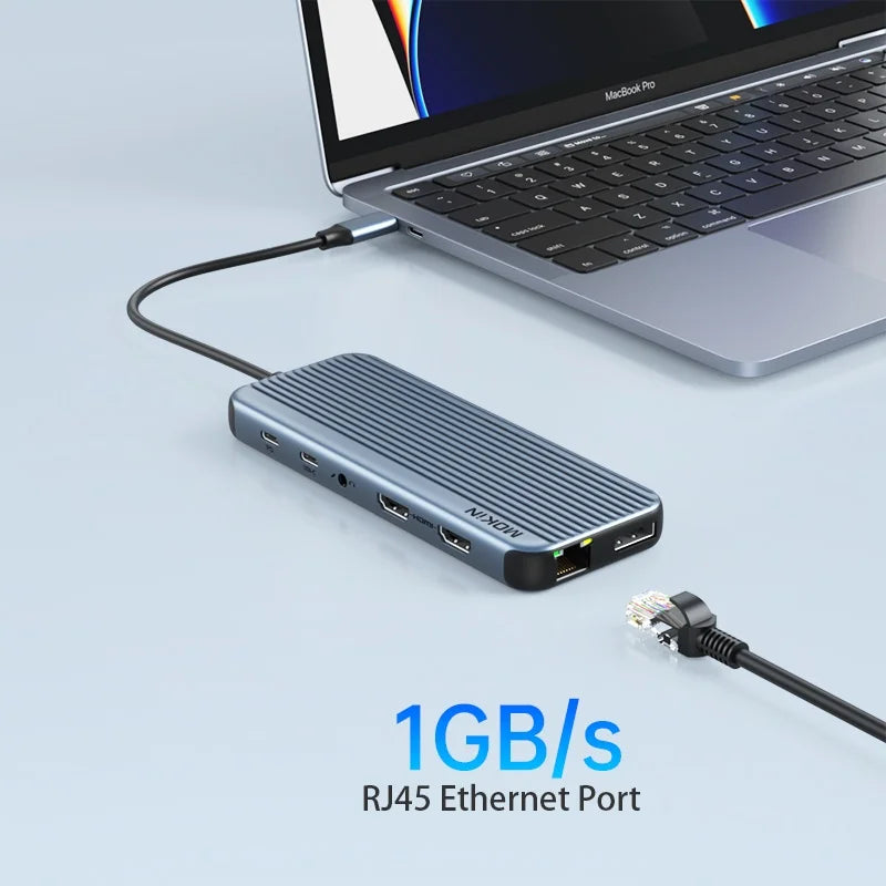 Hub USB C MOKiN 12-en-1 | HDMI 8K, DP, RJ45, SD/TF, PD 100W