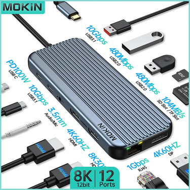 Station d'Accueil USB C MOKiN 12-en-1 | HDMI 8K, DP, RJ45, SD/TF, PD 100W – Connectivité Maximale et Performances Exceptionnelles