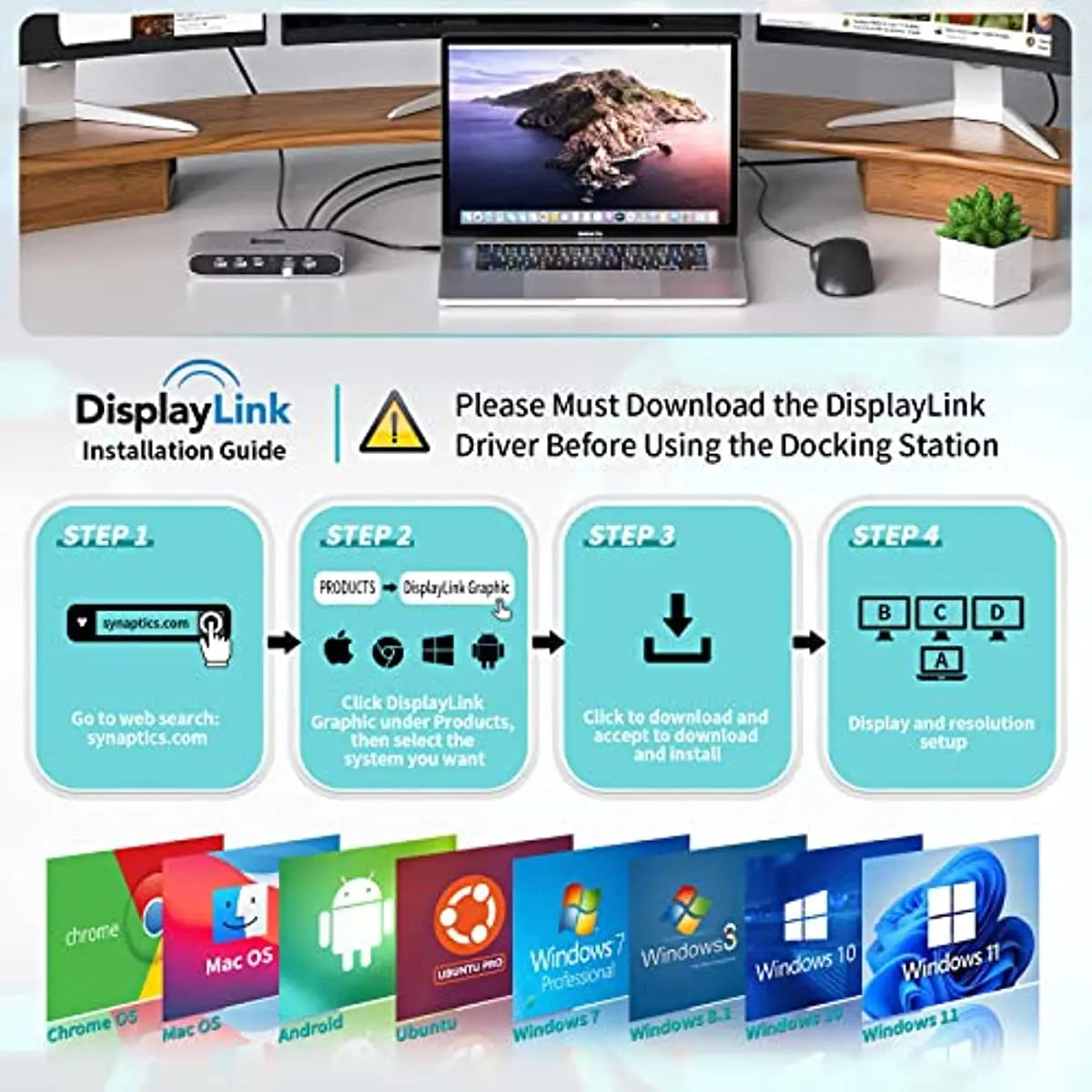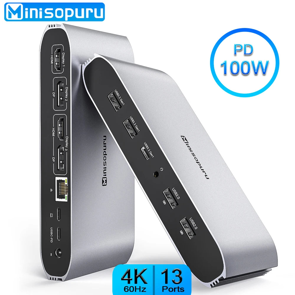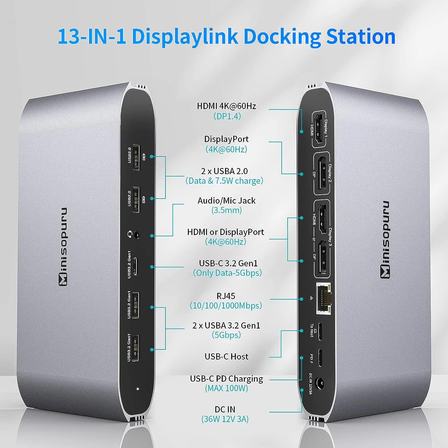 Station d'Accueil Triple Écran Minisopuru DisplayLink - Connectivité 4K pour MacBook et Windows